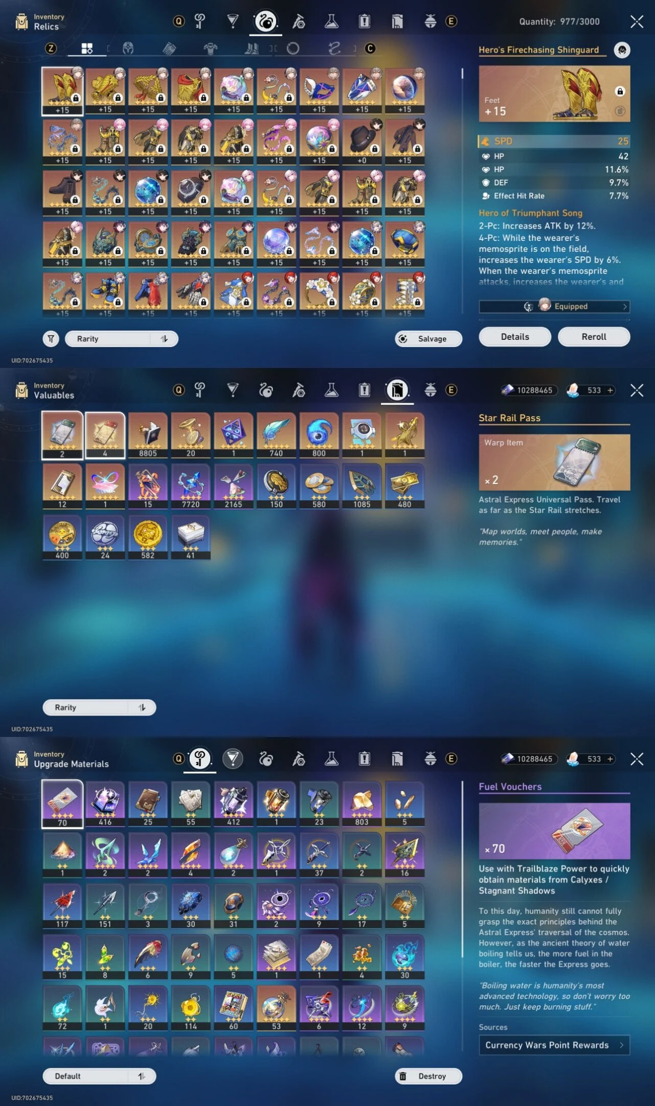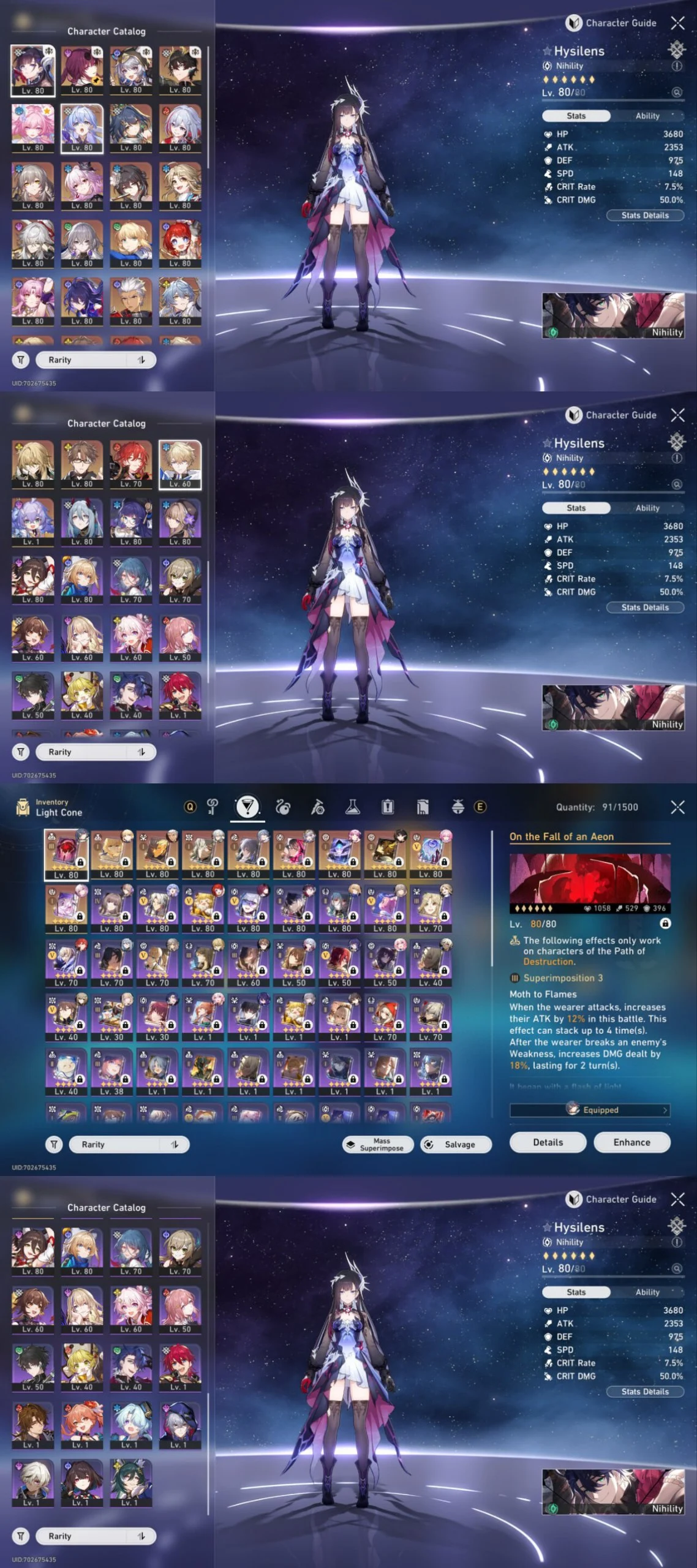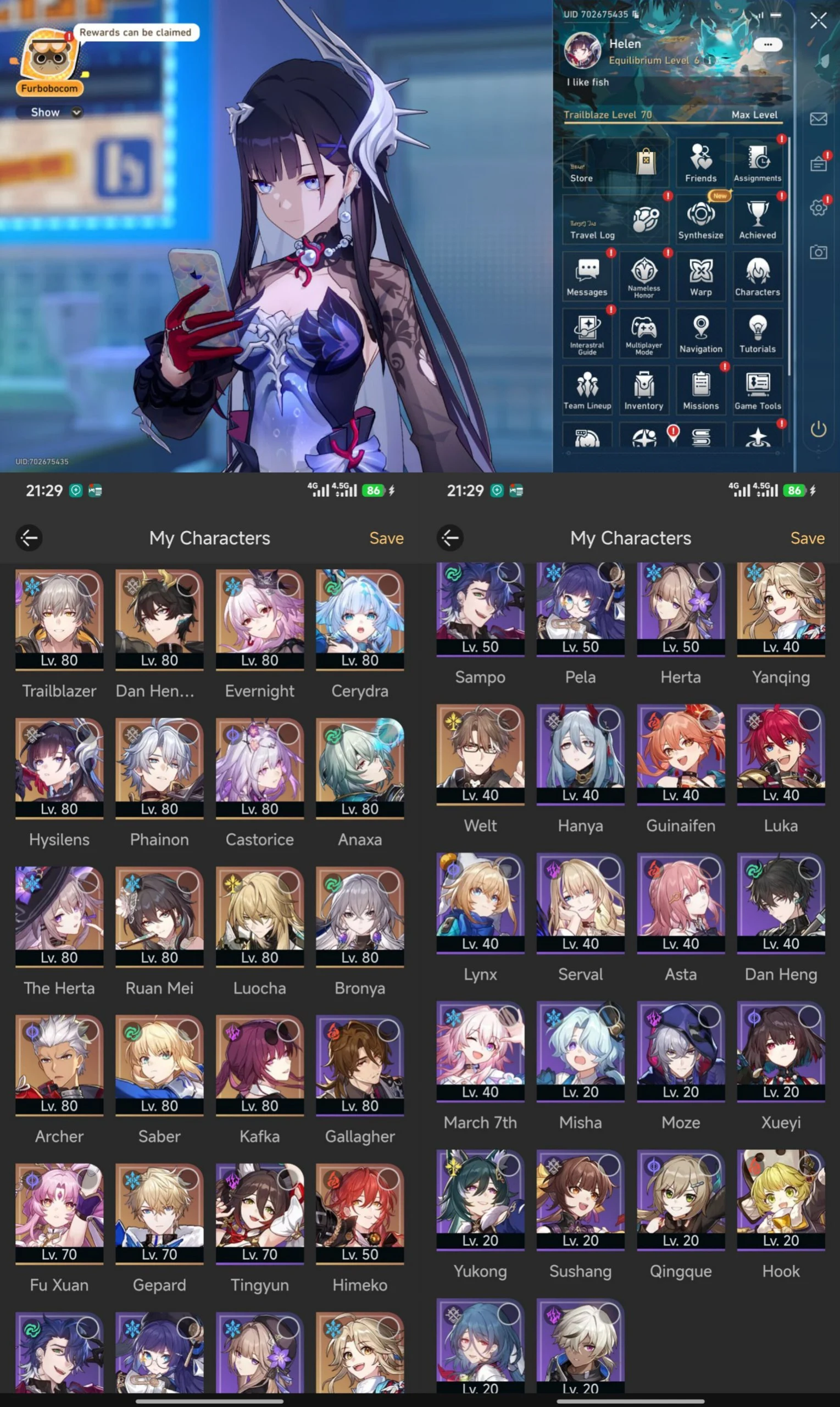 All Platform ⚔️ EU 🇪🇺 Level 70 💯 47 Character 21 5'Star 🏆 10 Weapon 5'Star 💎 Hysilens 🎖️ Evernight 🌟 Castorice 🧿 Phainon 🎯 Anaxa 💲 Code1412