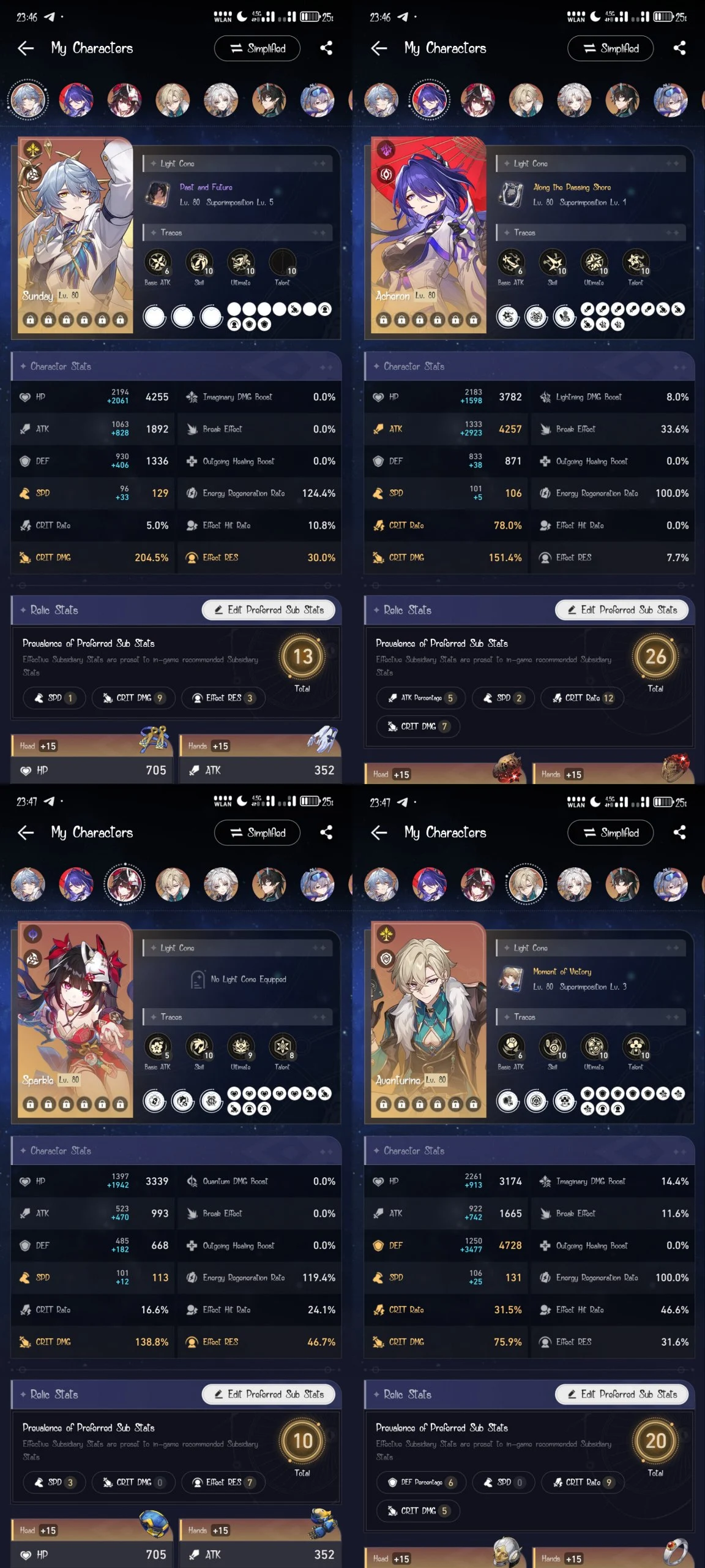 All Platform 🎮 EU 🇪🇺 Level70 🎯 48 Characters 26 5'Star 🛍️ 13 Weapon 5'Star 🏹 Sunday 🌟 Acheron 🧨 Anaxa 💎 Phainon 🌹 Cyrene 💲 Code917