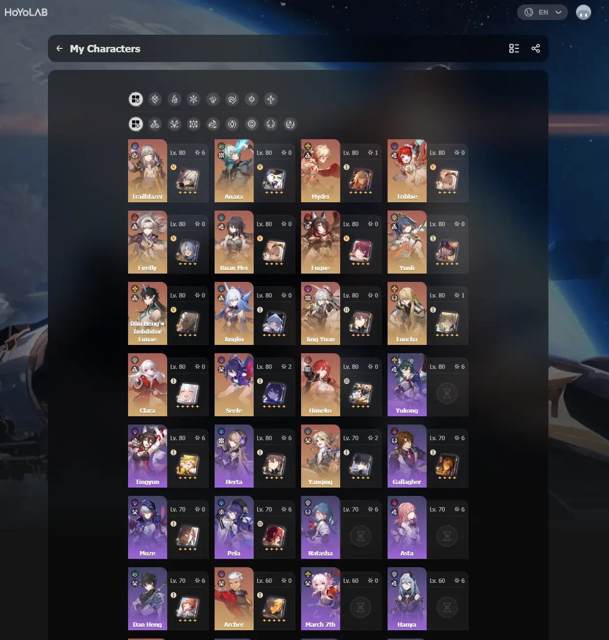 #HK2096 [EU] TL 70 | 23 EVENT LEGS | Seele E2&Sign+Mydei E1&Sign+Anaxa+Tribbie+Firefly+Ruan MeI+Fugue+Yunli&Sign+Archer&Sign | FULL ACCESS + EMAIL