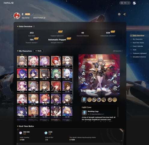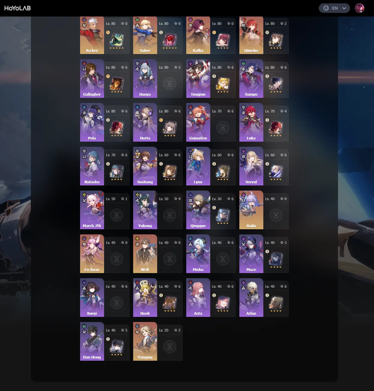 #HK2098 [EU] TL 70 | 27 EVENT LEGS HSR | 27 LEGS GENSHIN | Evernight+Phainon+Castorice+Anaxa+Firefly E1+Acheron E1+Aventurine E1 | FULL ACCESS + EMAIL