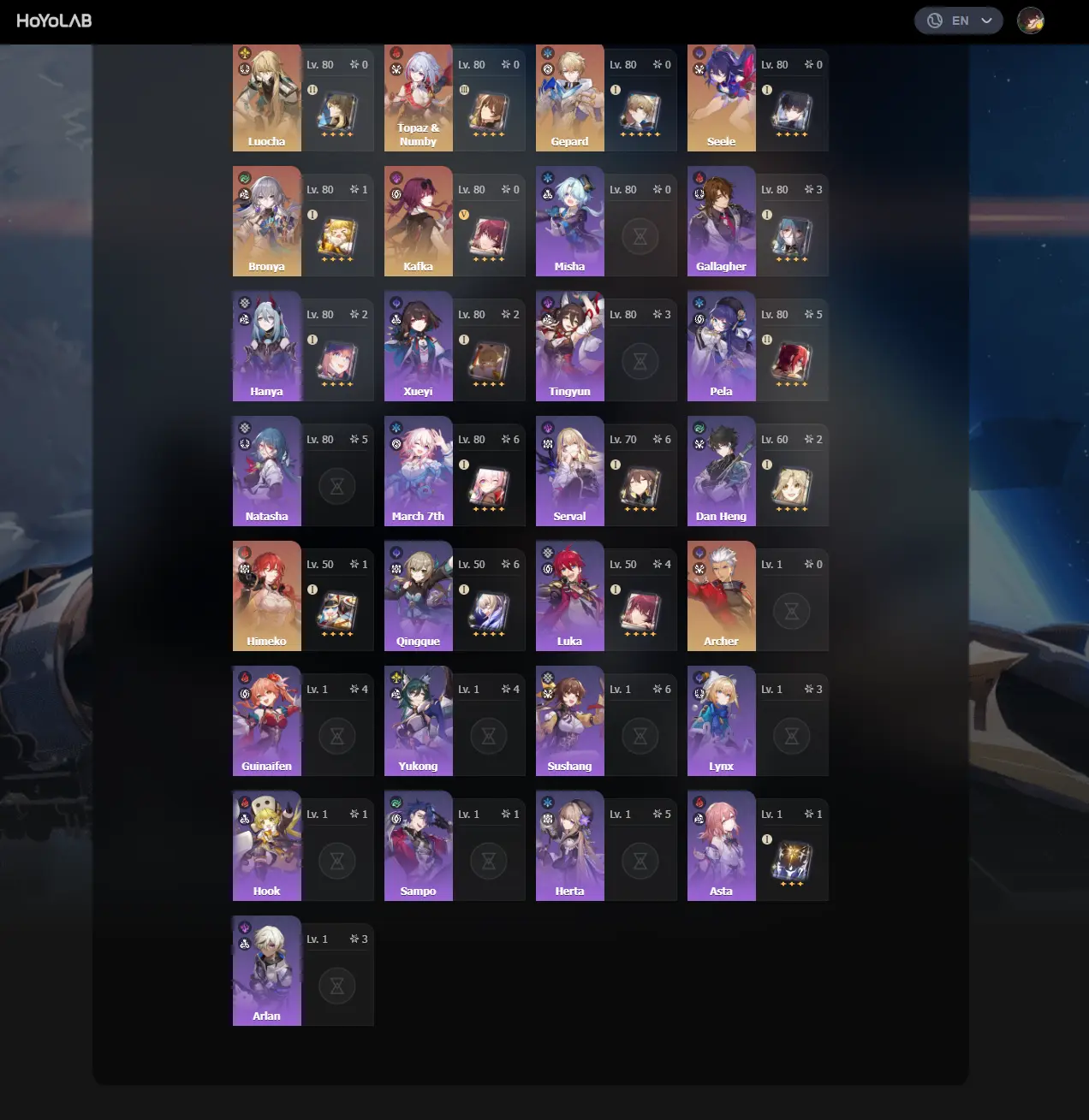 #HK2104 [Asia] TL 70 | 14 EVENT LEGS | Hysilens+Acheron+Black Swan+Ruan Mei&Sign+Dan He+Blade&Sign+Luocha+Topaz+Seele+Kafka+MORE | FULL ACCESS + EMAIL