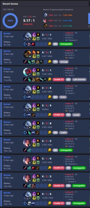 Unranked (100% WR)