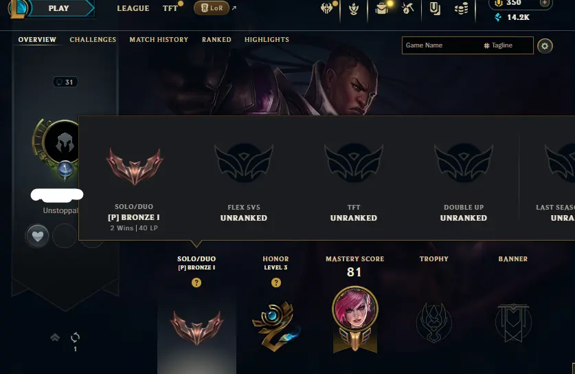 🔥Bronze 1 40LP (2W/0L in Placements) Handleveled💎14K BE 350RP⭐Name Changeable🔓Unverified Email✅Lifetime Ownership Guarantee✔️Recovery info included