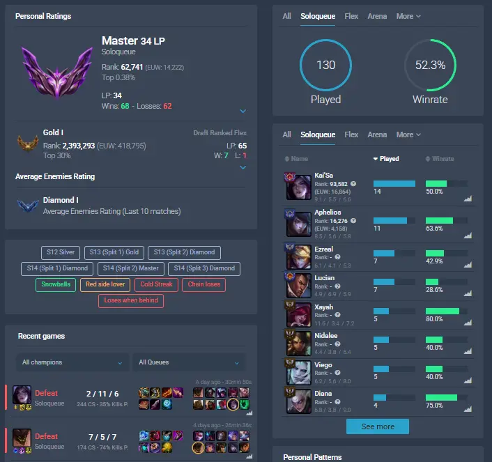 ✅EUW Diamond I (ADC/JNG)58LP✅127 CHAMPIONS✅61 SKINS✅HIGH MMR +20 /-20 LP GAIN %52 WR✅ FULL SAFE ACCOUNT✅