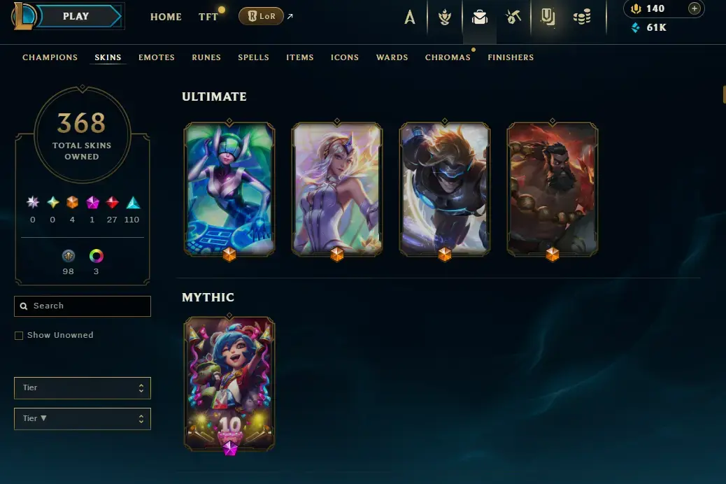 ⭐️ EUW ⸱ Silver 3 ⭐️ Champ(168)Skin(368) ⭐️✅️ Mail Changeable ⸱ ✅️ Handmade !MKG0599
