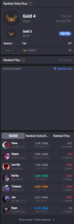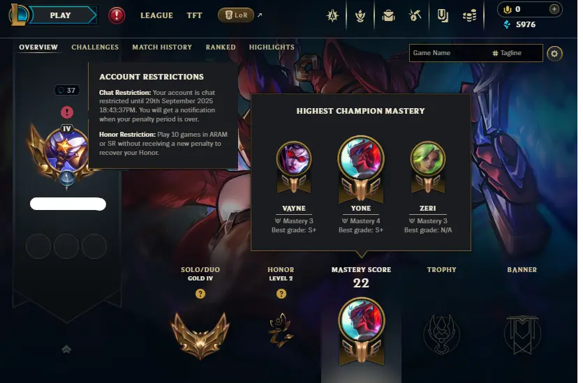 🔥Gold 4 75LP 55%WR Handleveled💎6K BE 4Best Skins⭐Name Changeable✅Lifetime Ownership Guarantee ⸱ Never Taken Back