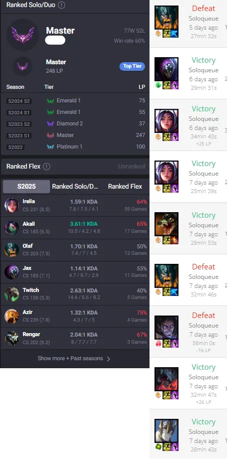 High MMR🔥LVL167 Master 50LP 60%WR Handleveled💎144Champs 34Skins + LOOT⭐Name Changeable✅Lifetime Ownership Guarantee ⸱ Never Taken Back
