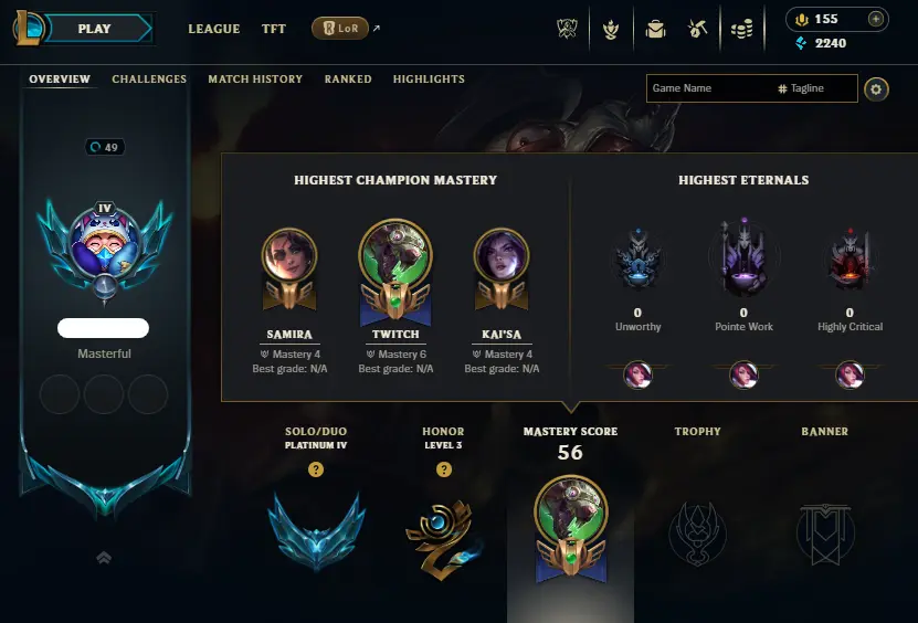 🔥LVL49 Platinum 4 99LP Handleveled💎+38/-12LP Gains⭐Name Changeable🔓Unverified Email✅Lifetime Ownership Guarantee ⸱ Never Taken Back