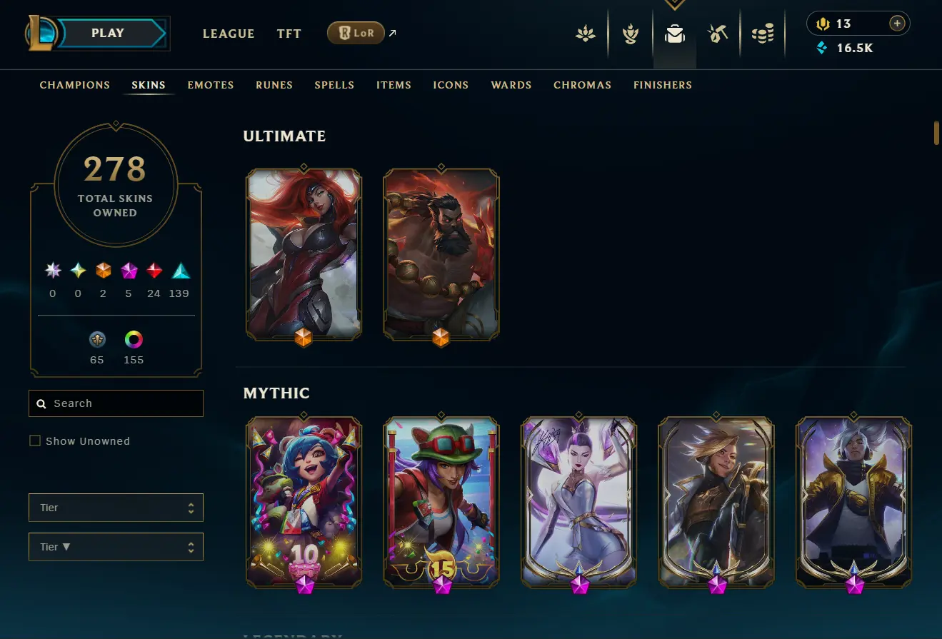 Main account⚡EUNE ⸱ Unranked ⚡ IG Kai'sa Exlusive Chroma| 2 ULTIMATE SKINS 5 MYTHIC TOTAL 278 Skins |16555 BE| 13 RP💰| 1687 Orange Essences| 398 ICONS😃|