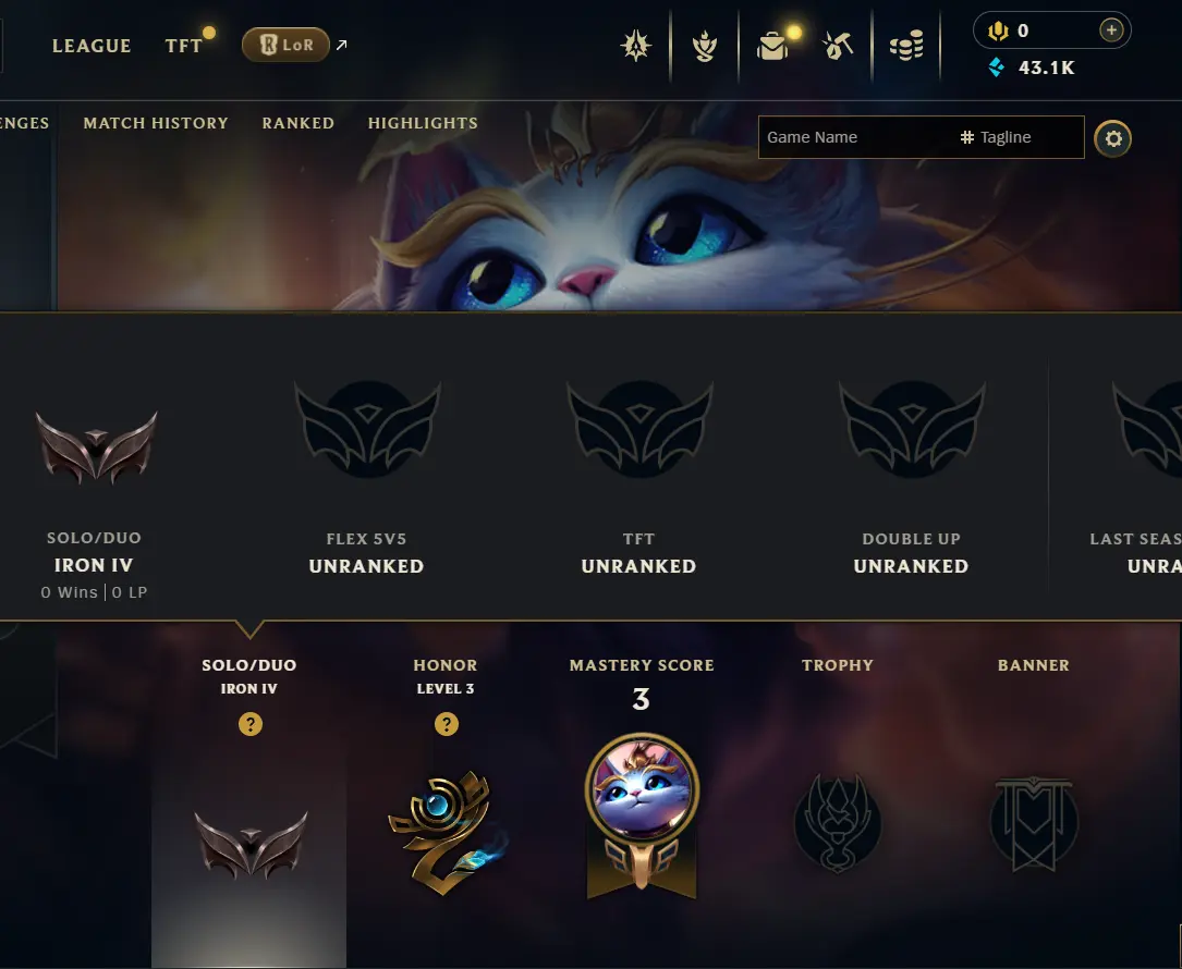 ⚫ NA | Iron IV – 0W–5L (0% WR / Out of Placements / Low MMR) | 💰43.1K BE | 🧭Lvl 30 | 🧙♂️21 Champs | ⚡Instant Delivery | 🔒 Unverified