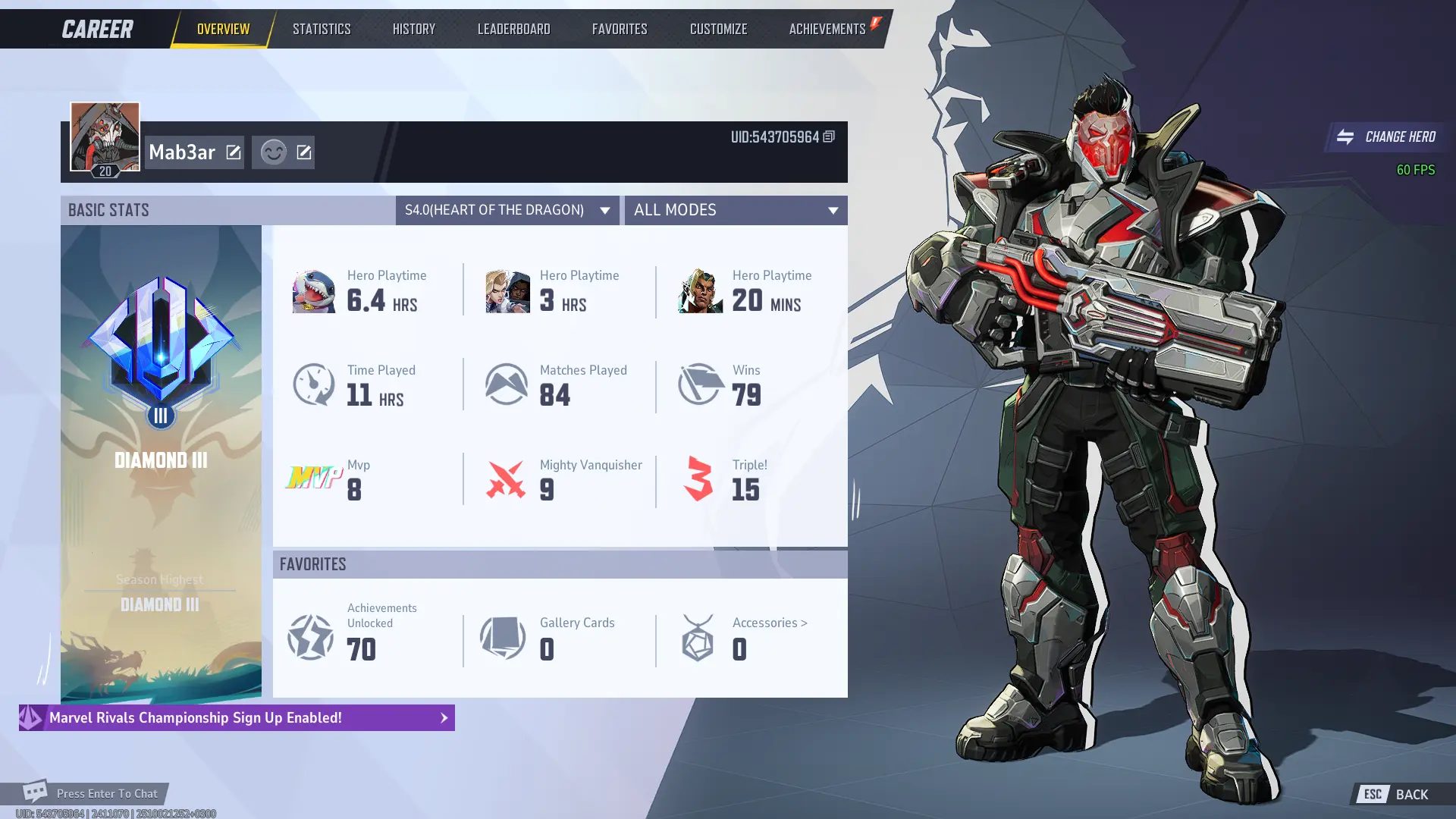 Season 4 🌀 Diamond 3 Rank 💠 Level 20 🎖 100 Lattice 🎟 1750 Units 🎫 6460 Chrono Tokens 🔮 Global All Regions 🌐 Steam Full Access