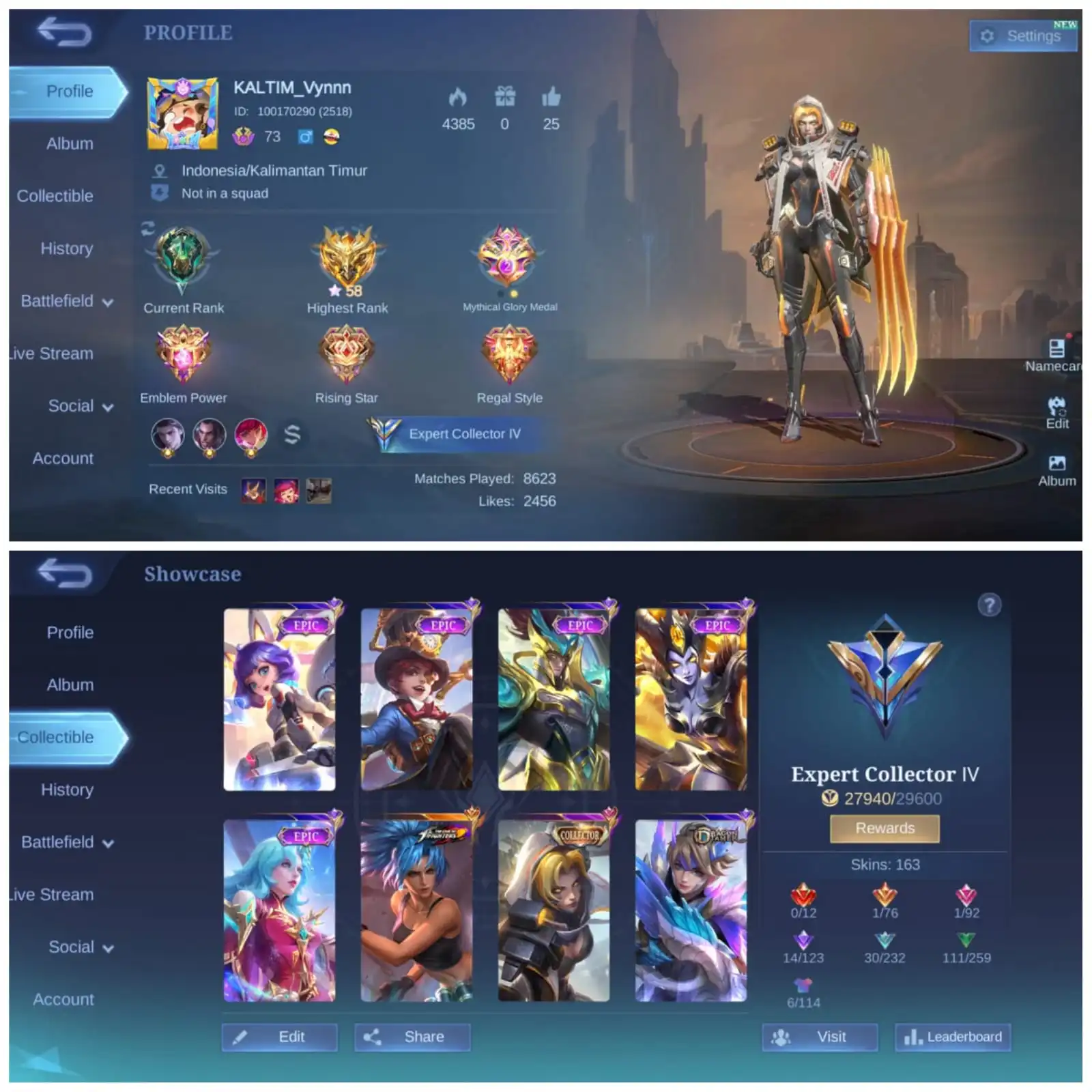 118 HEROES || 163 SKINS | 1 KOF | 1 COLLECTOR SKIN | 1 DRAGON TAMER SKIN | 5 EPIC | 3 SABER | 2 BLAZING | 10 STARLIGHT SKIN | 12 SPECIAL SKINS | EX GLORY