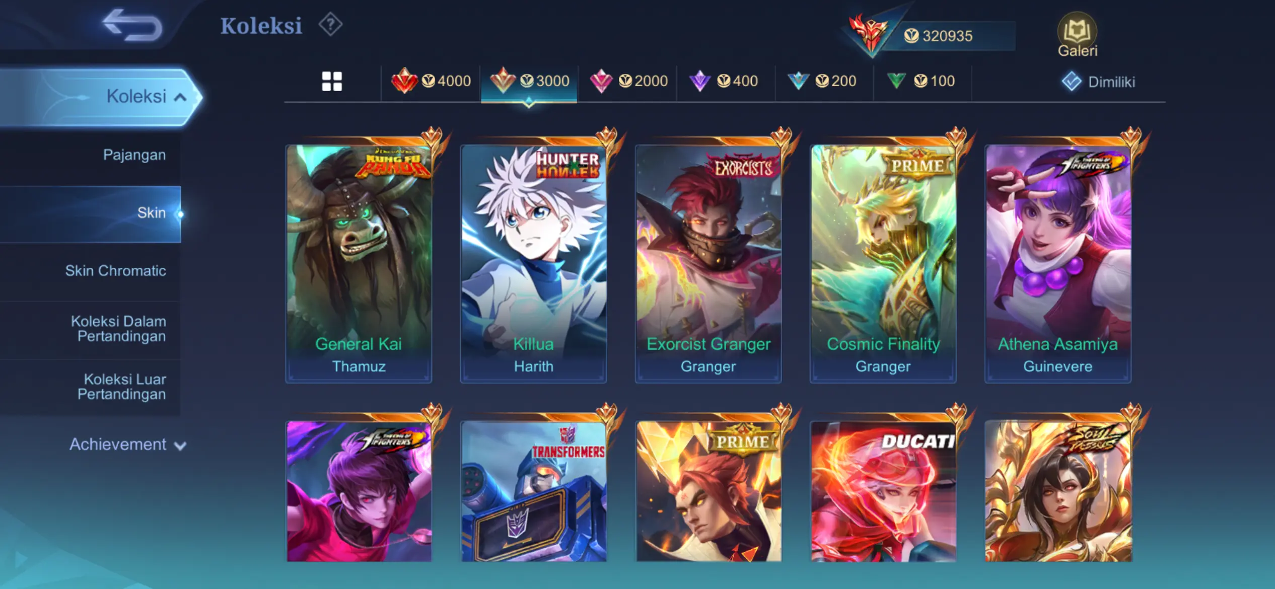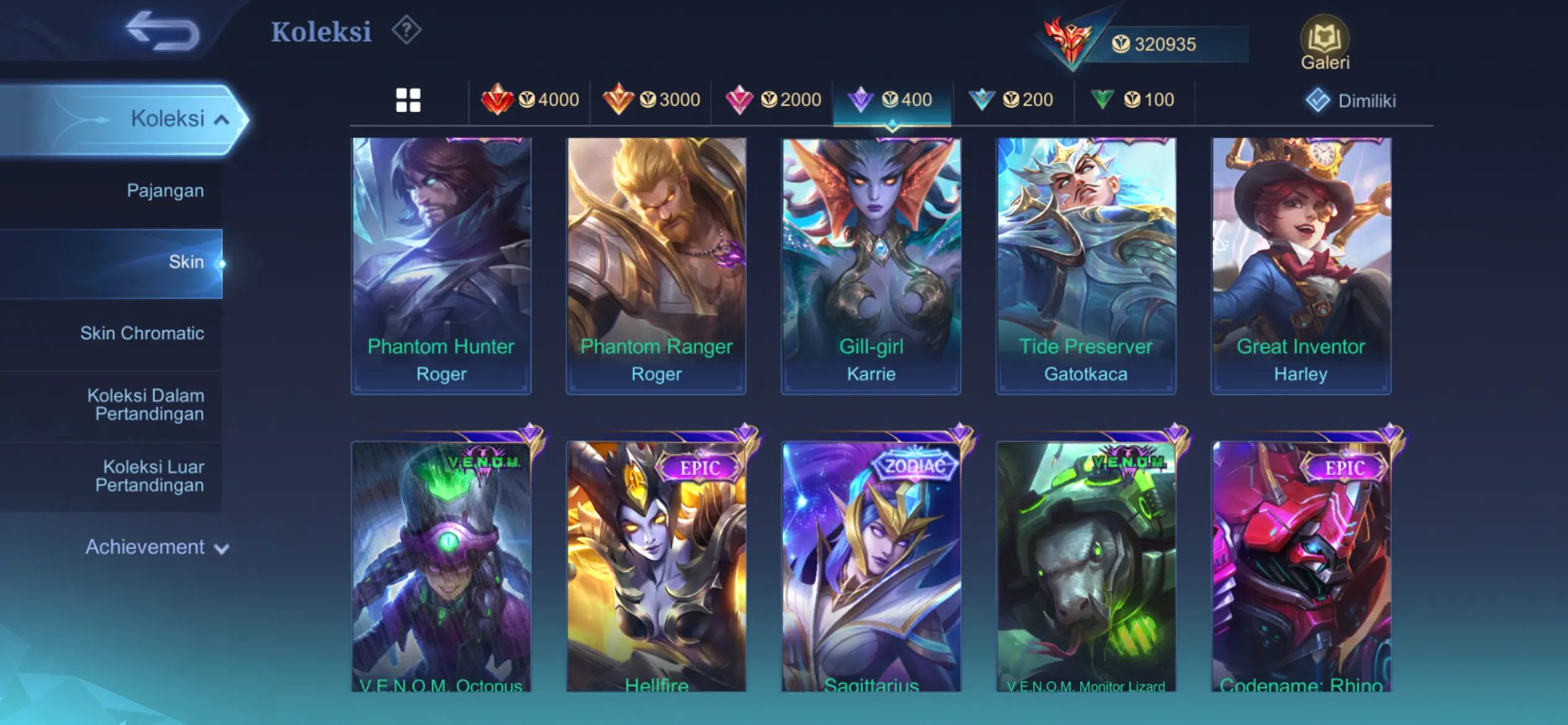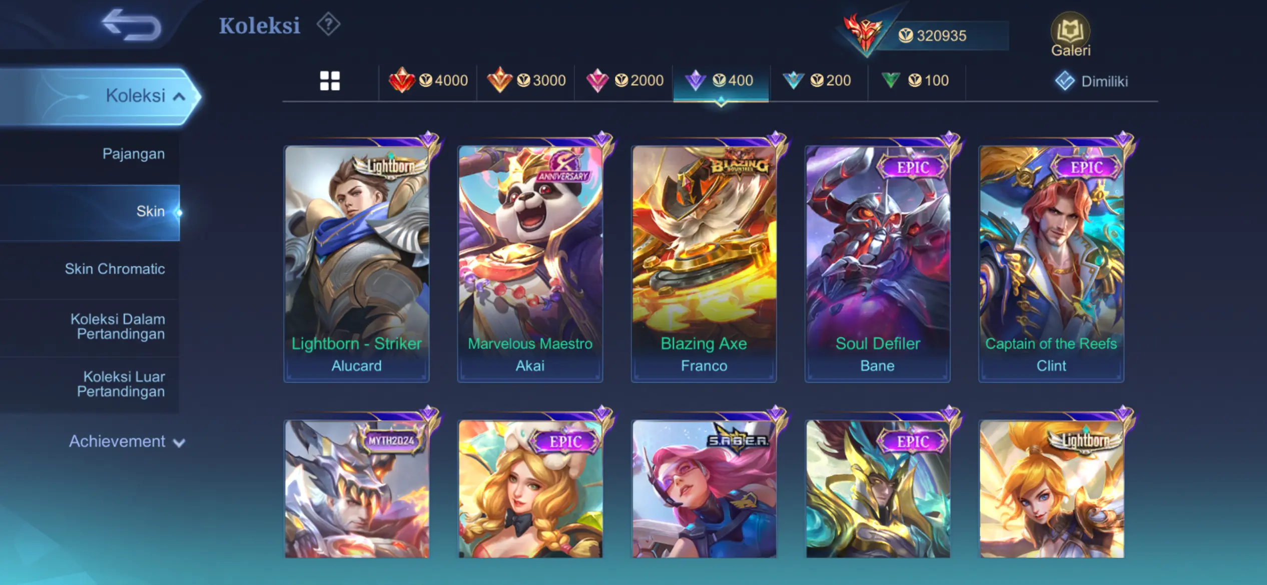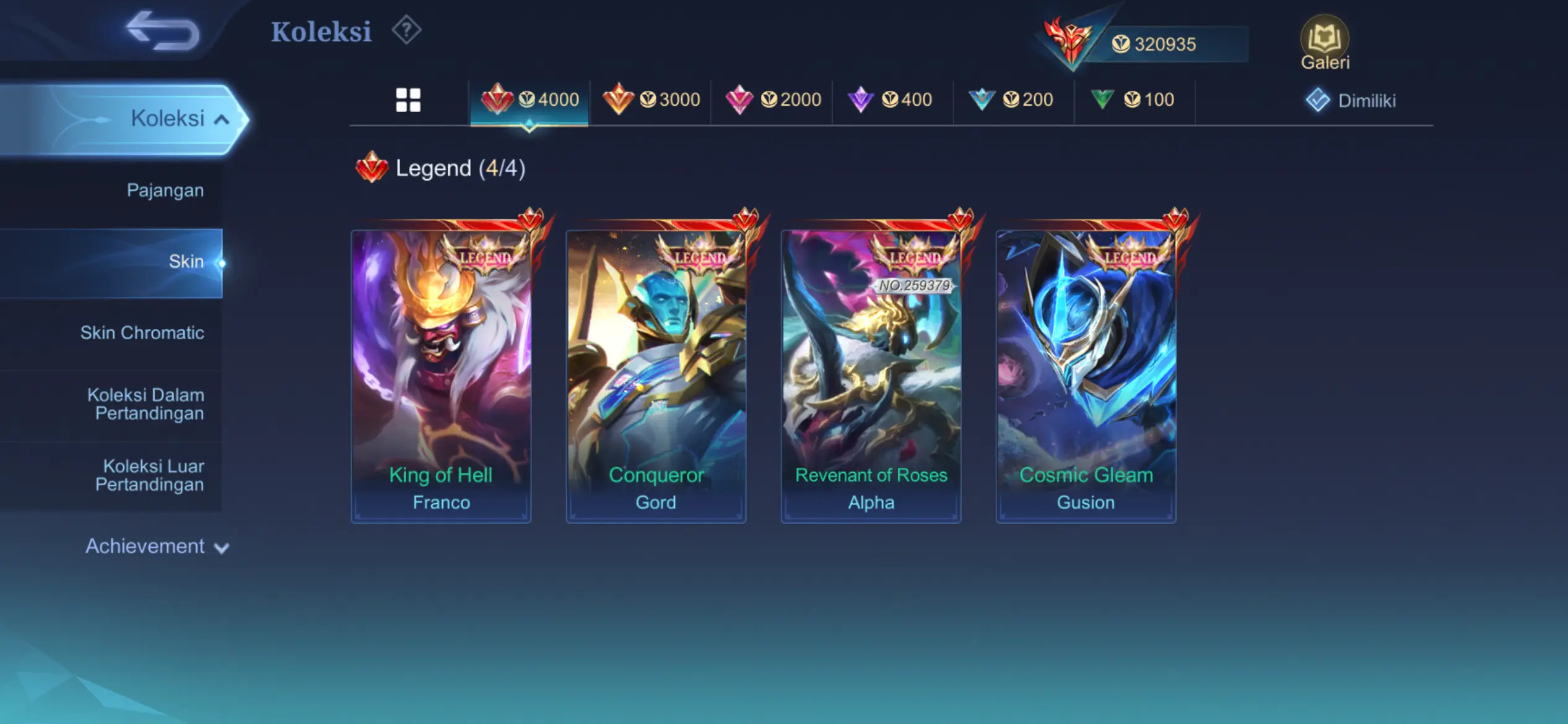 🔥ACTUAL LIMITED🔥633 Skins🔥Personal Account🔥Ex 153 Immortal🔥4 Legend Skins and 1 Stones Legends (Franco, Gord,Alpha, Gusion)🔥37 Grand Skins 🔥30 Exquisite Skins🔥105 Deluxe Skins🔥162 Exceptional Skins and 245 Common Skins🔥Full Access & Guarantee🔥
