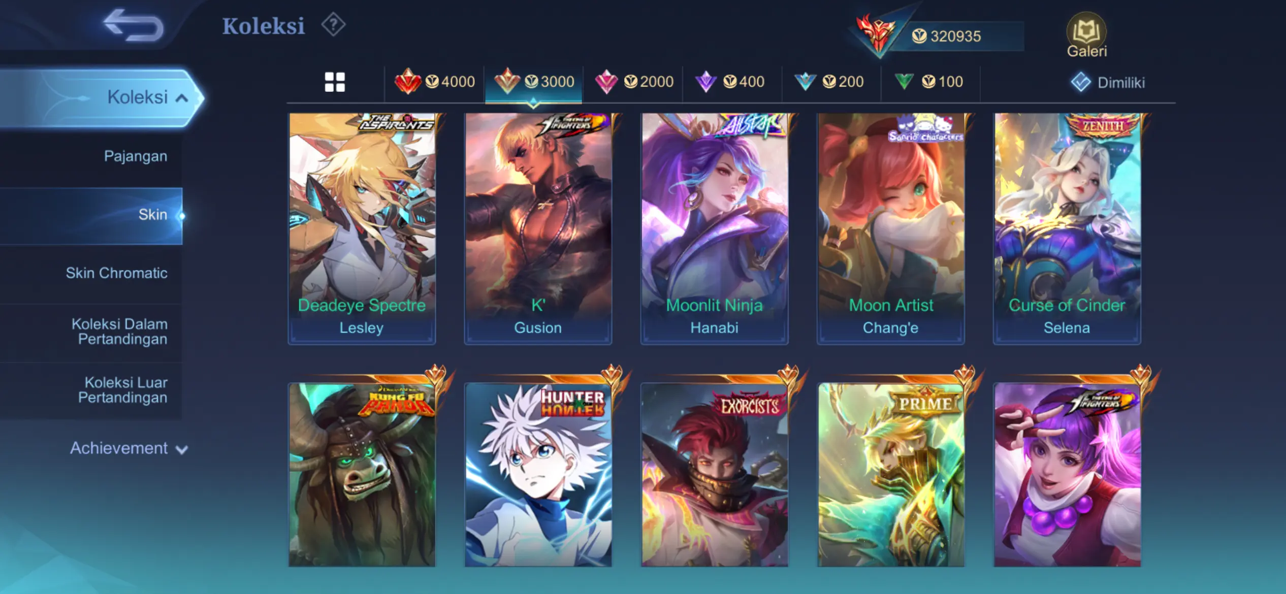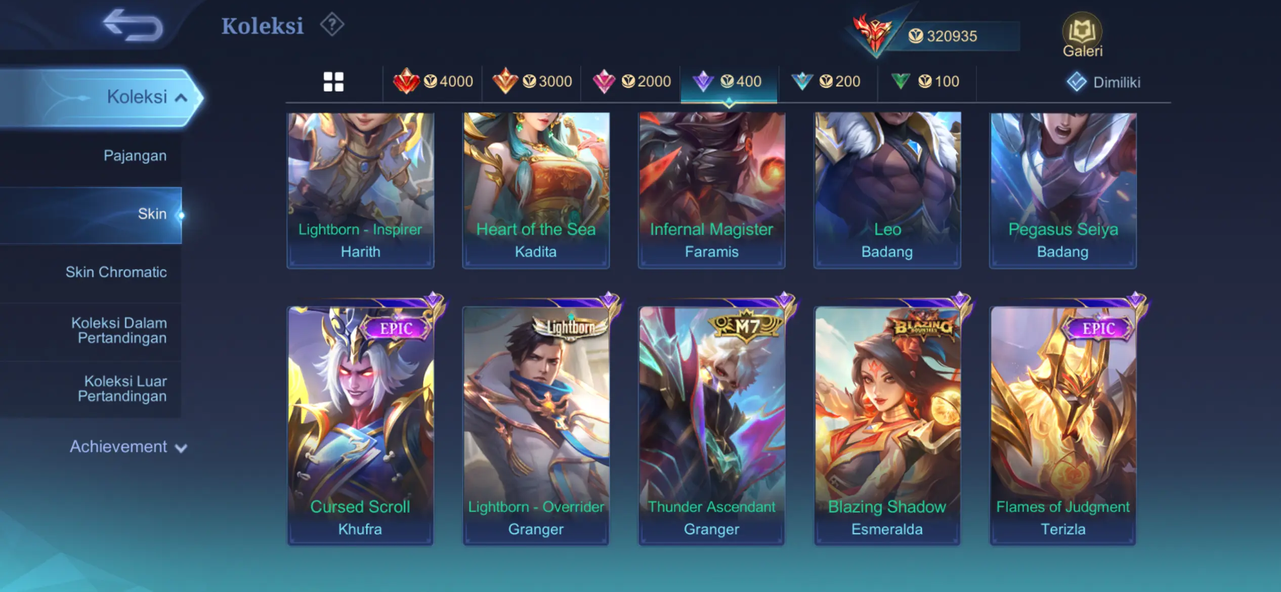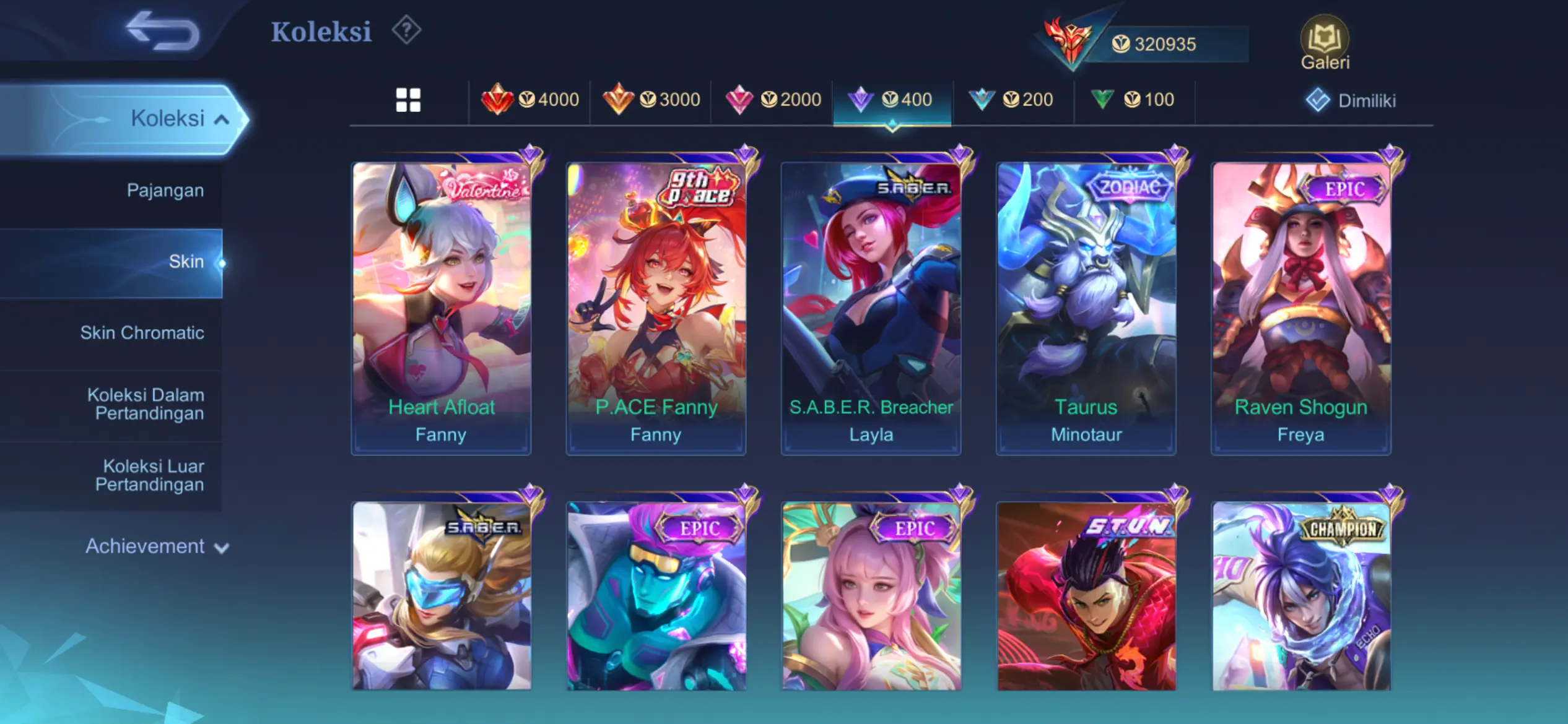 🔥ACTUAL LIMITED🔥633 Skins🔥Personal Account🔥Ex 153 Immortal🔥4 Legend Skins and 1 Stones Legends (Franco, Gord,Alpha, Gusion)🔥37 Grand Skins 🔥30 Exquisite Skins🔥105 Deluxe Skins🔥162 Exceptional Skins and 245 Common Skins🔥Full Access & Guarantee🔥