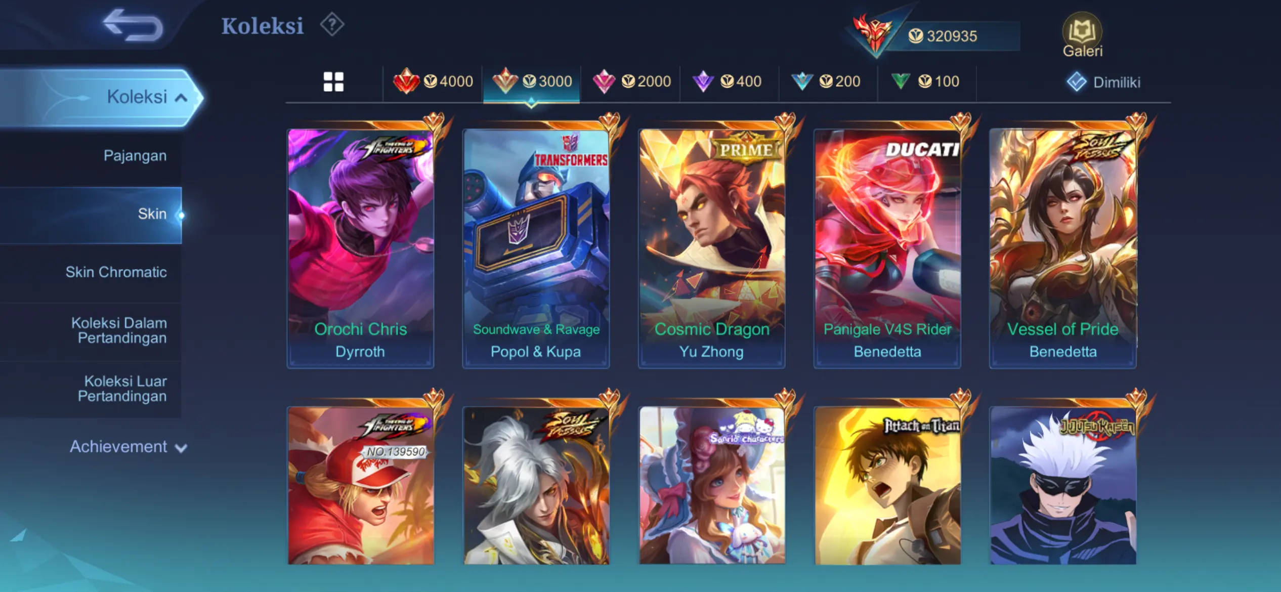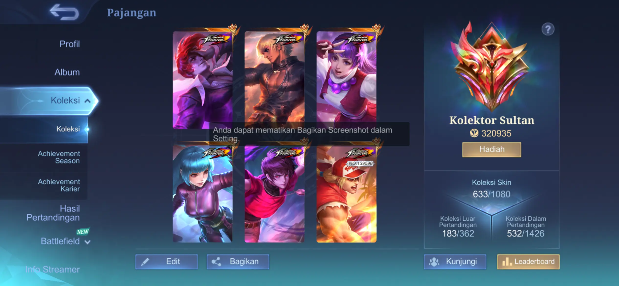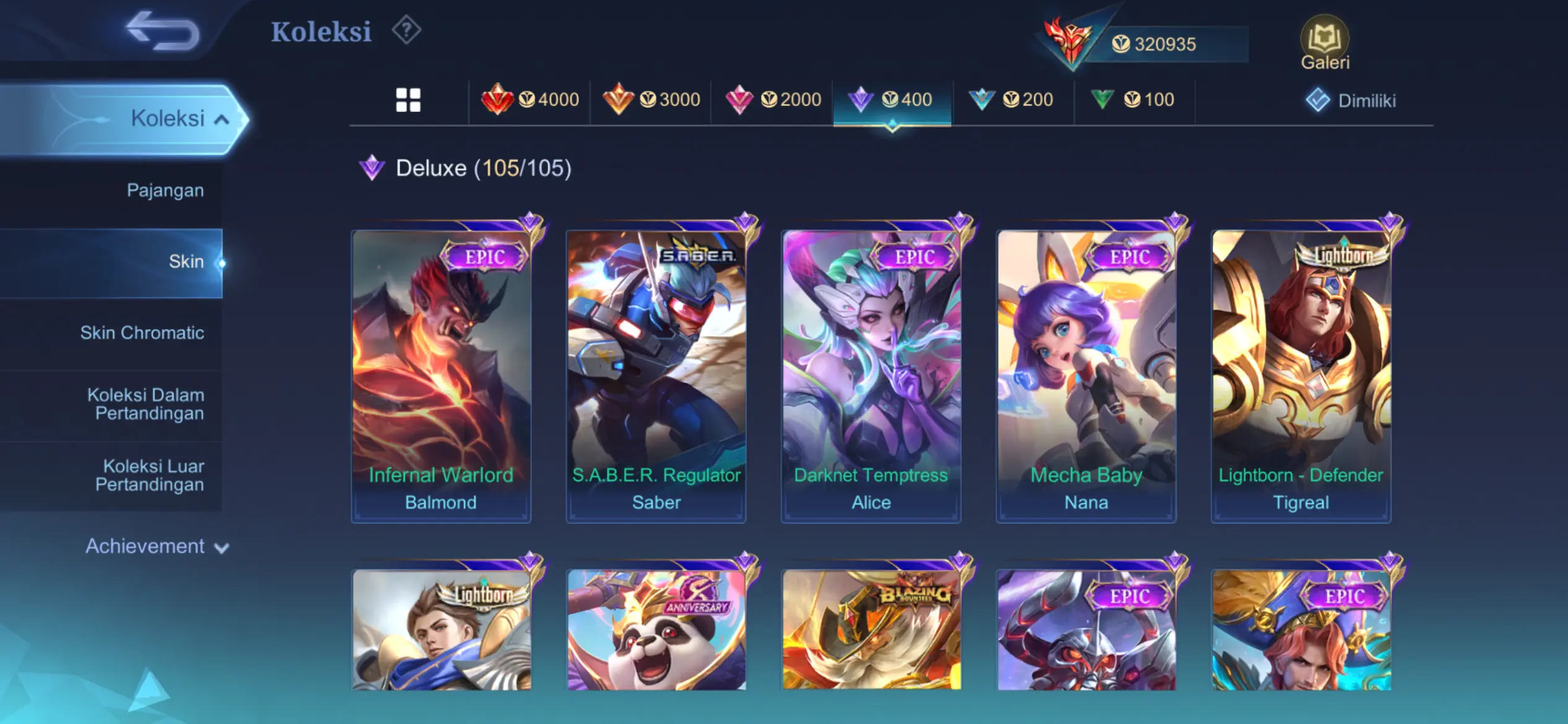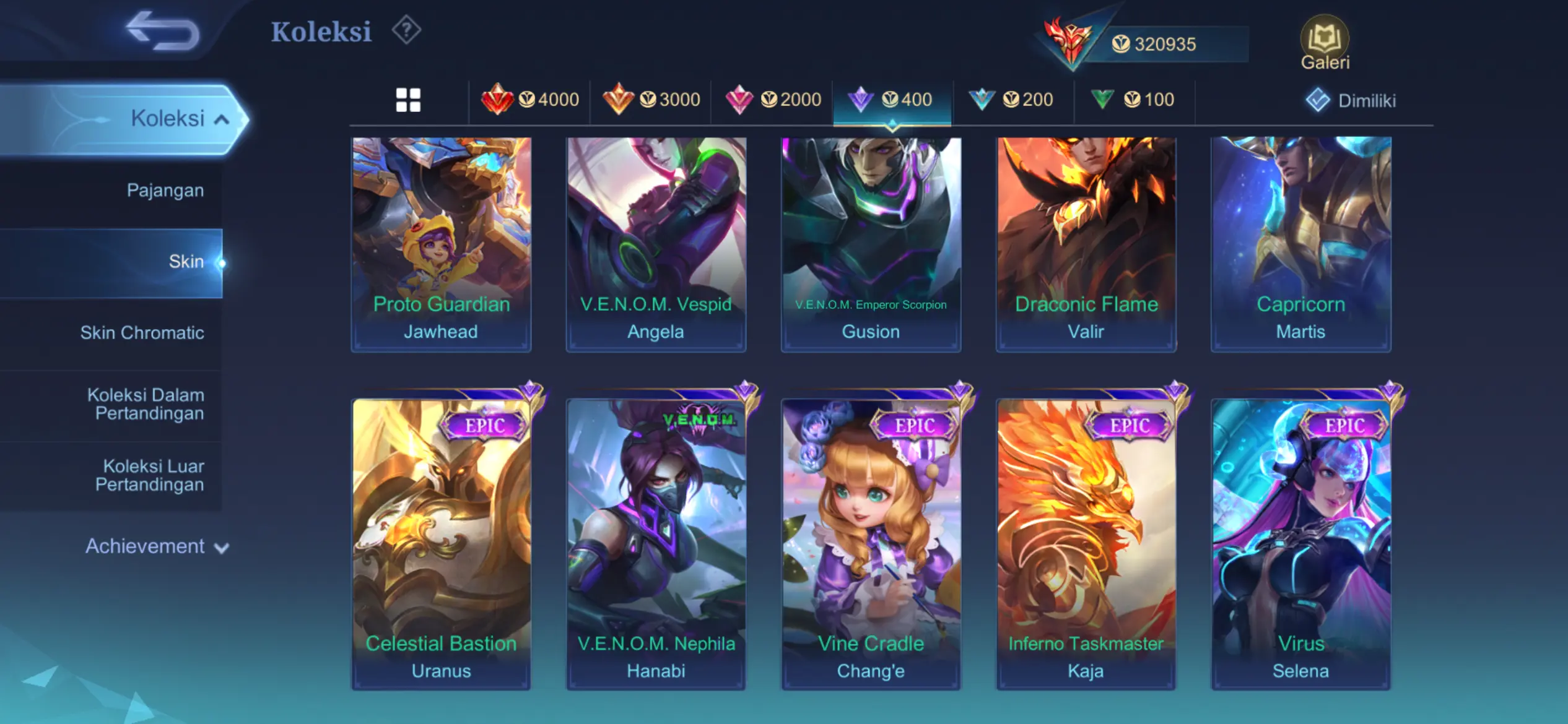 🔥ACTUAL LIMITED🔥633 Skins🔥Personal Account🔥Ex 153 Immortal🔥4 Legend Skins and 1 Stones Legends (Franco, Gord,Alpha, Gusion)🔥37 Grand Skins 🔥30 Exquisite Skins🔥105 Deluxe Skins🔥162 Exceptional Skins and 245 Common Skins🔥Full Access & Guarantee🔥