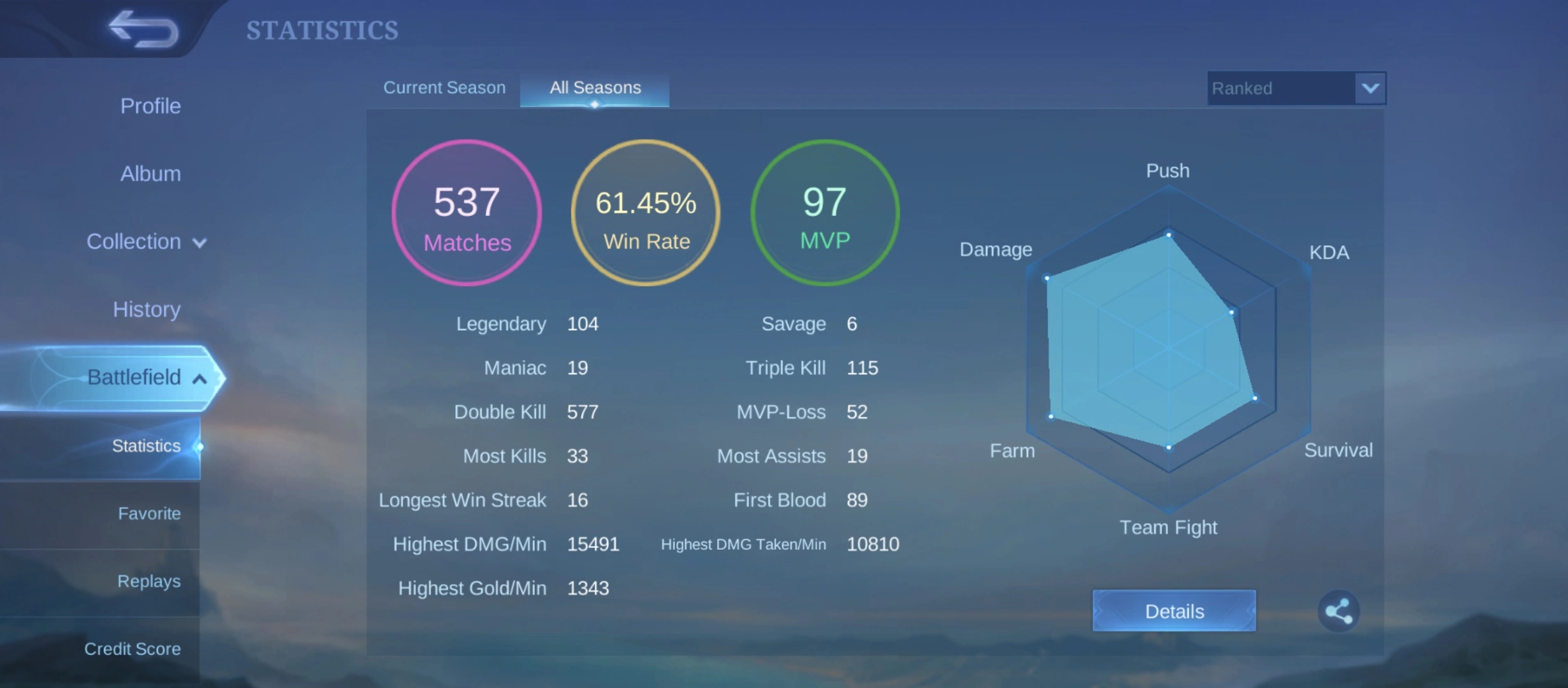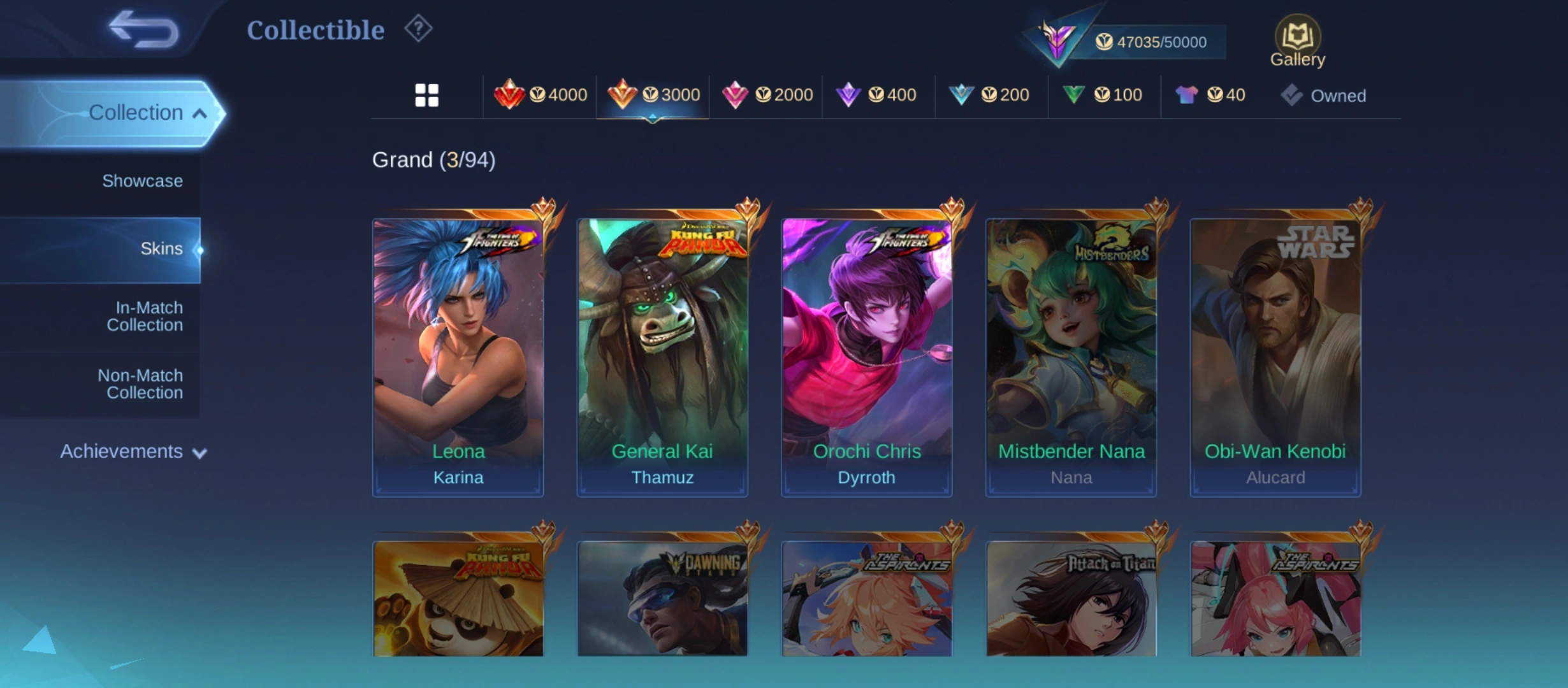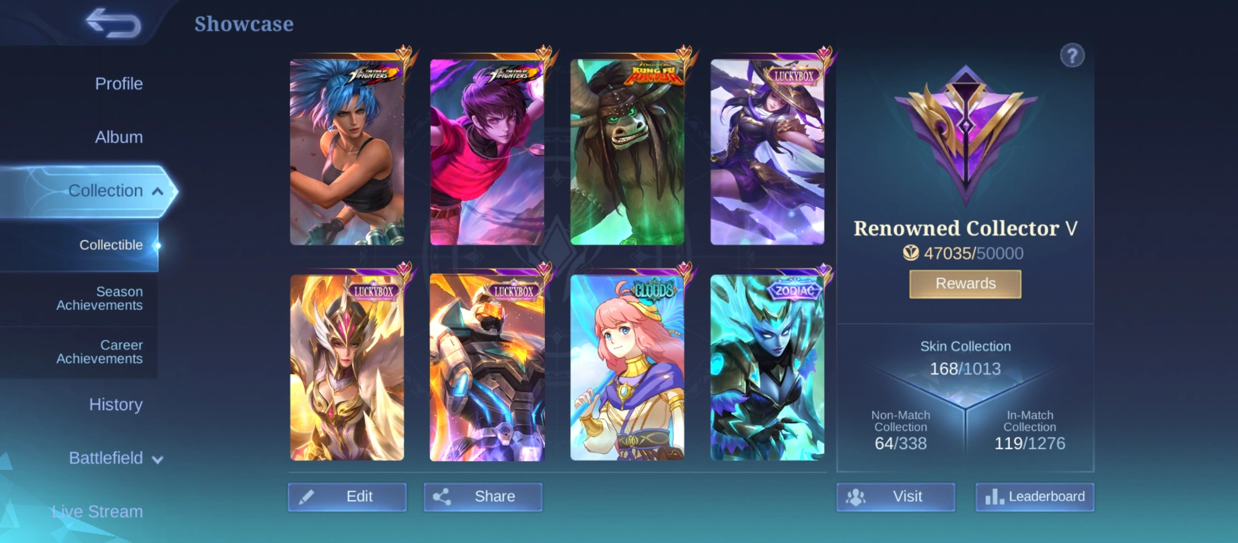 GG810|Lvl 53|RENOWNED CC 5|168 SKIN|61% HIGH WR|2 KOF|DYRROTH KOF|THAMUZ KUNGFUPANDA|KAGURA CLOUDS|3 LUCKYBOX(FANNY,FREYA,GATOTKACA)