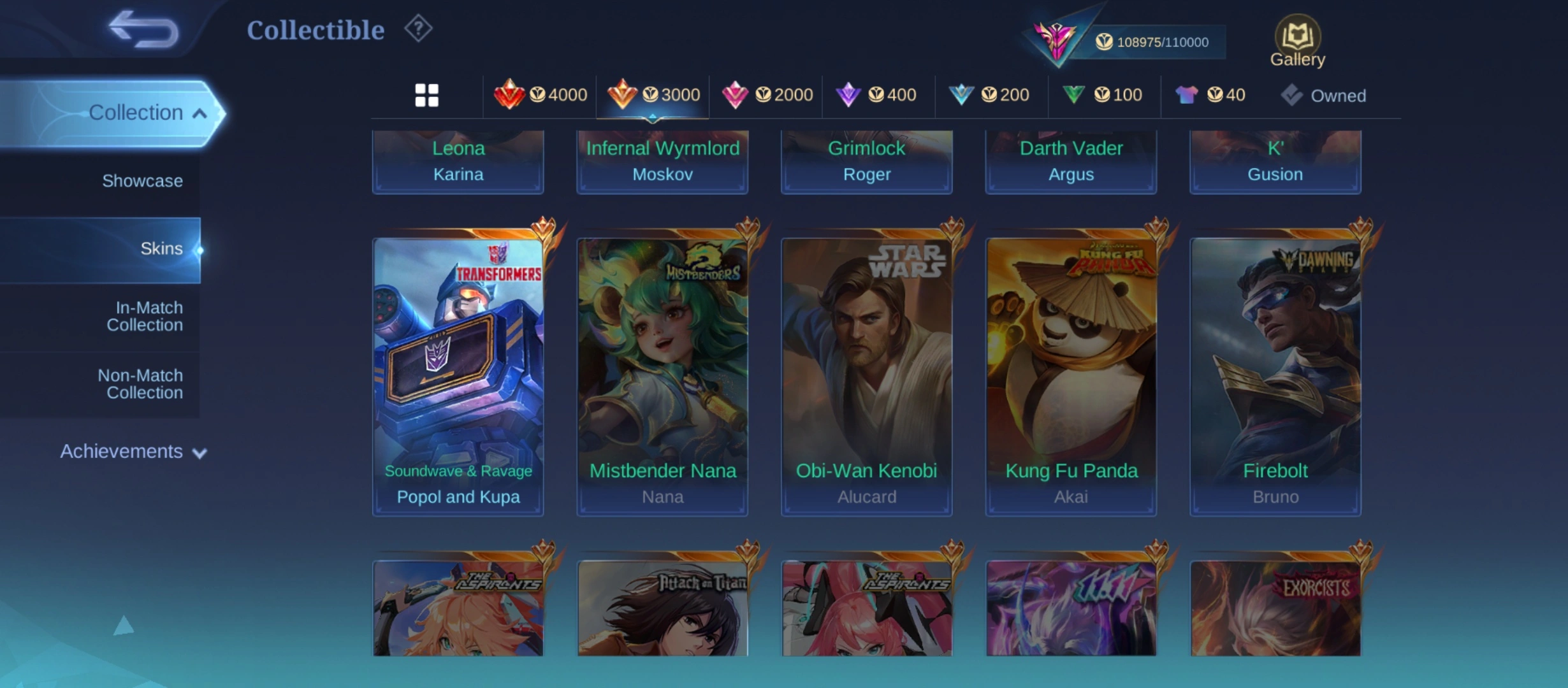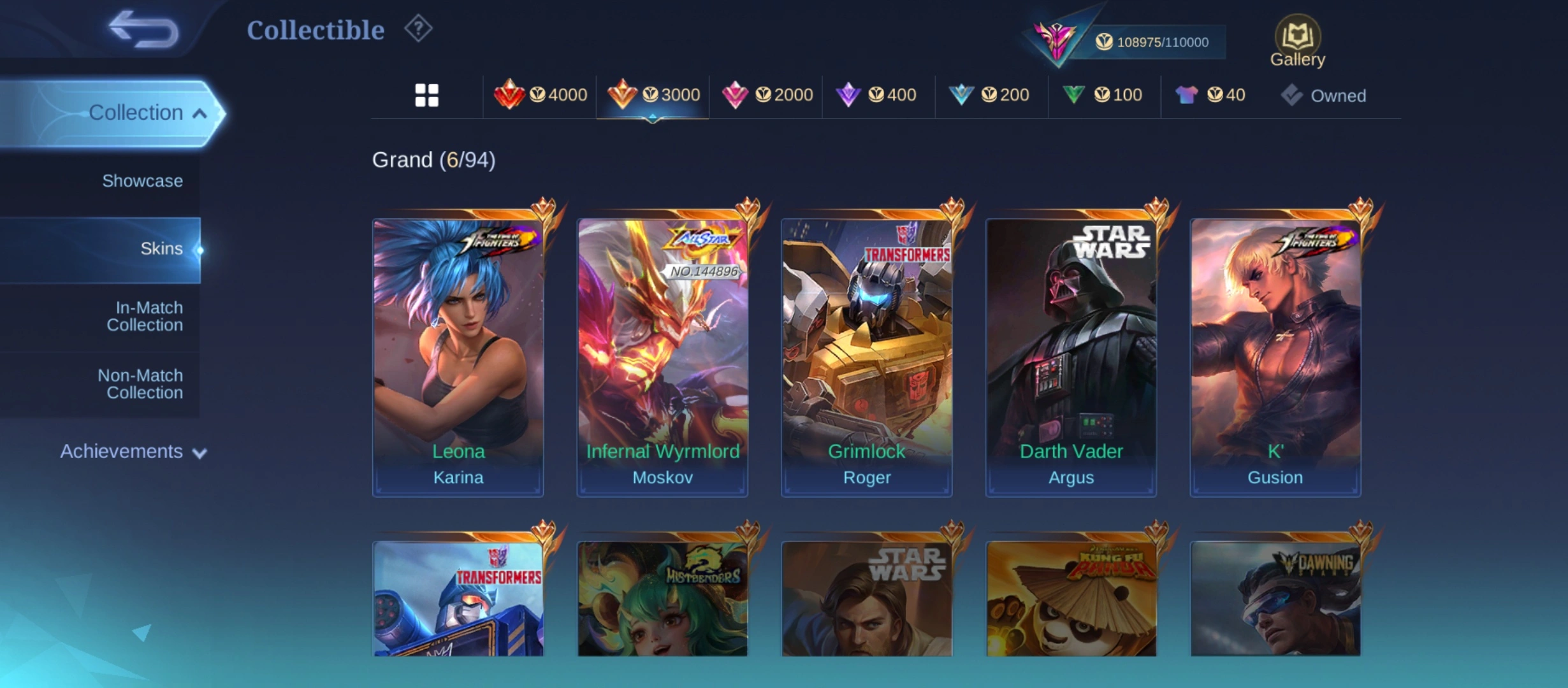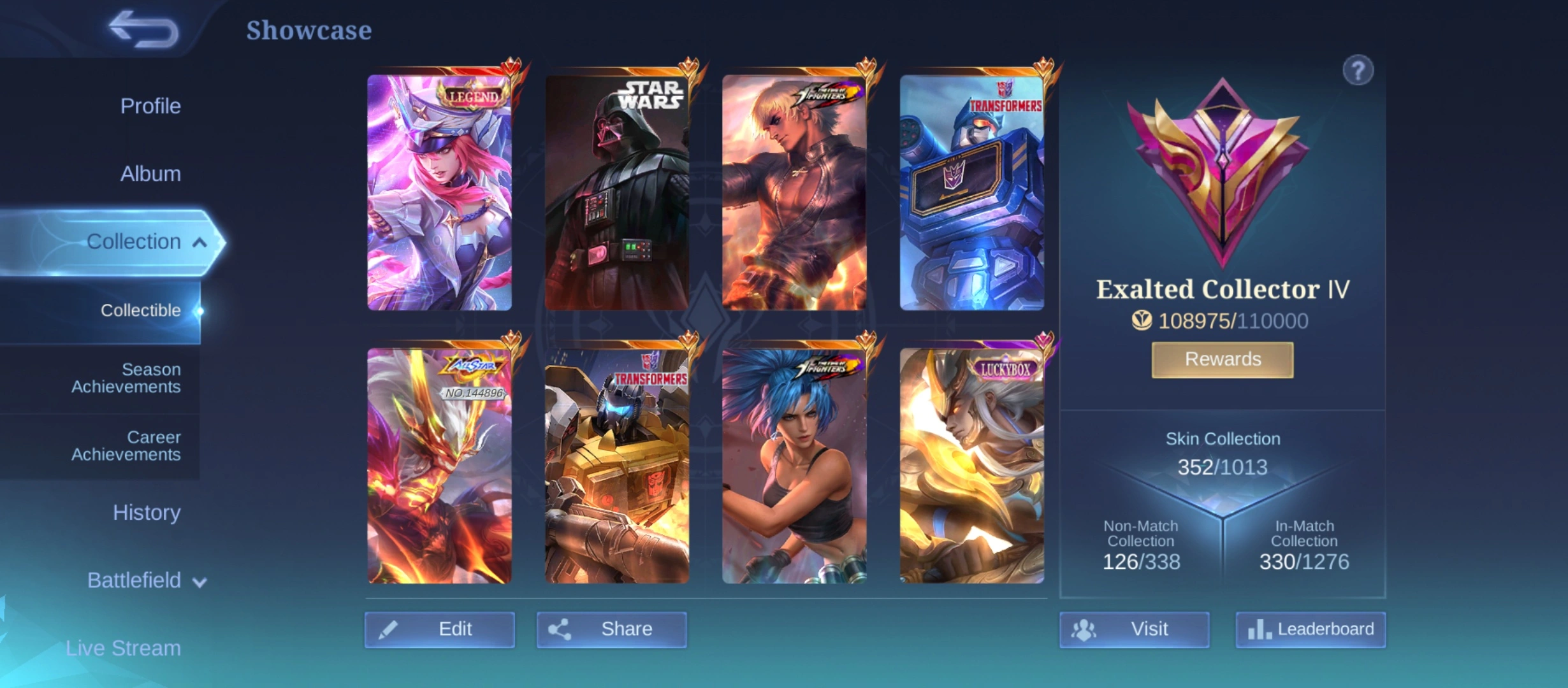 GG813|Lvl 101|EXALTED CC 4|ALL EMBLEM MAX|352 SKIN|FREYA LEGEND|ARGUS STARWARS|2 KOF|GUSION KOF|MOSKOV INFERNAL|2 TRANSFORMER(POPOL KUPA,ROGER)|5 LUCKYBOX