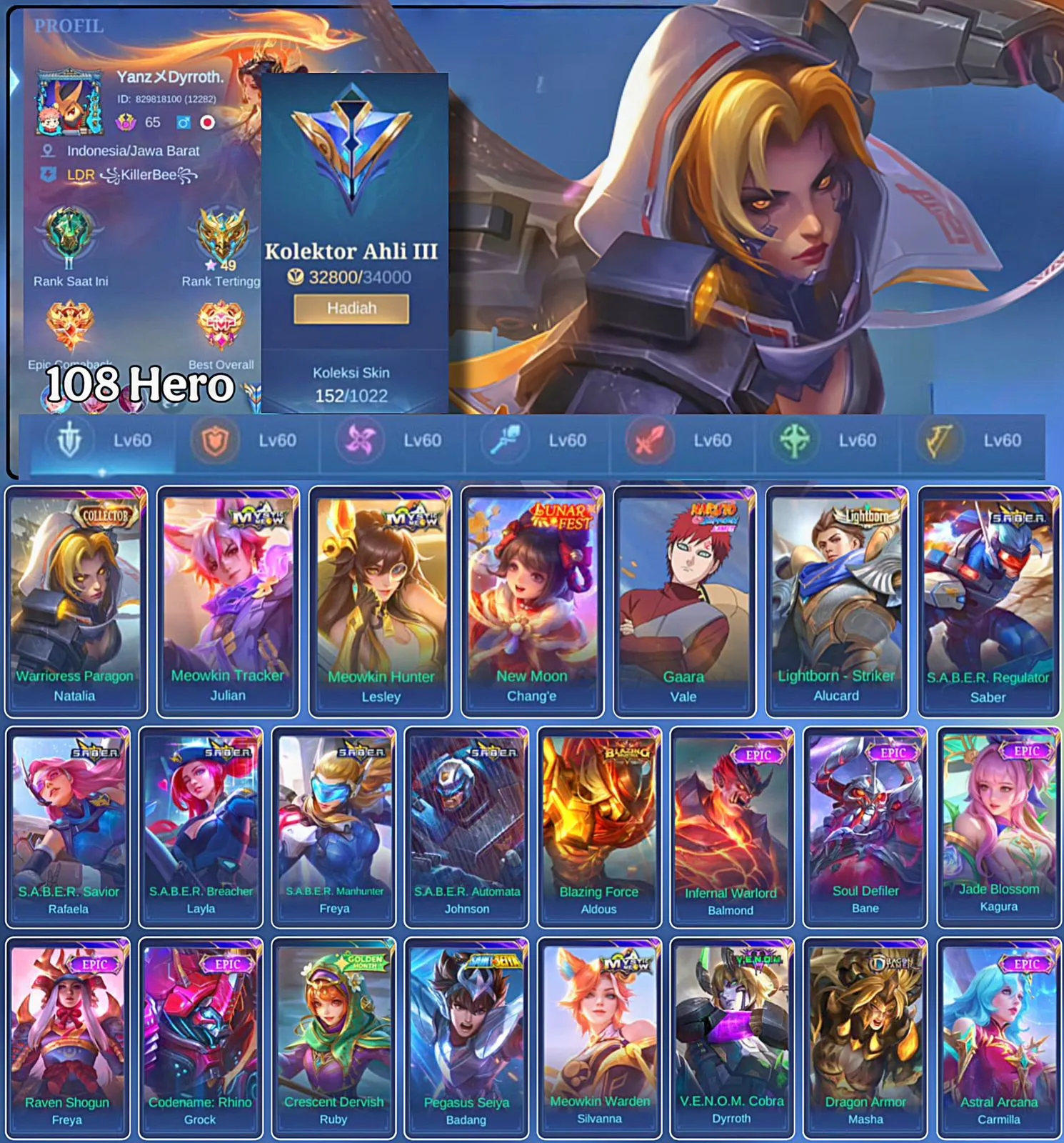 HERO 108 SKIN 152 | EMBLEM ALL MAX | COLECTOR NATALIA | MEOWKIN JULIAN | MEOWKIN LESLEY | EPIC KAGURA | HERO GOOD | SKIN GOOD | INSTAN DELIVERY