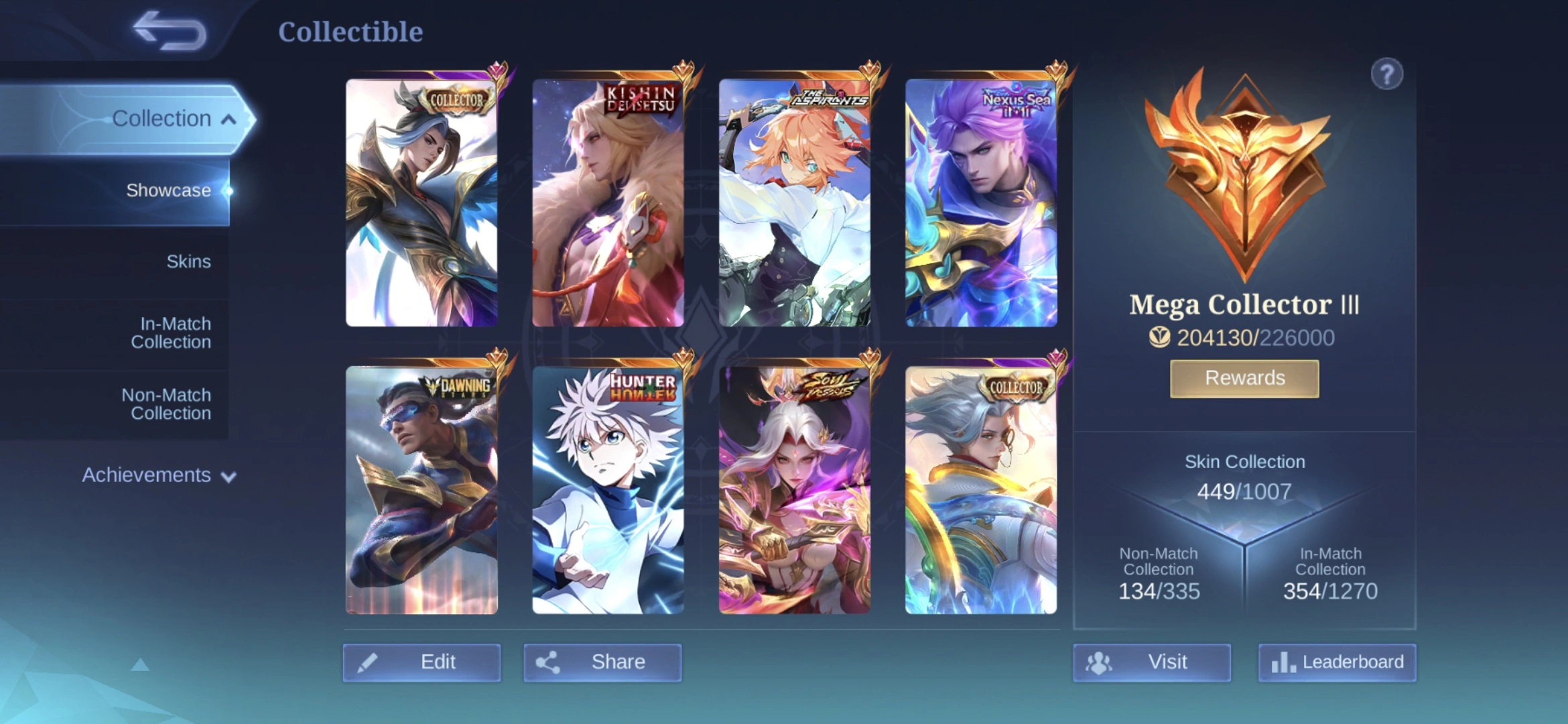 MC44|LV90|MEGA COLLECTOR III|449 SKIN|2 LEGEND|5 KOF|2 JUJUTSU KAISEN|HARITH KILUA|DAWNING BRUNO|LANCELOT KISHIN|COLLECTOR LING|HANABI SOUL VESSELS|2 11.11