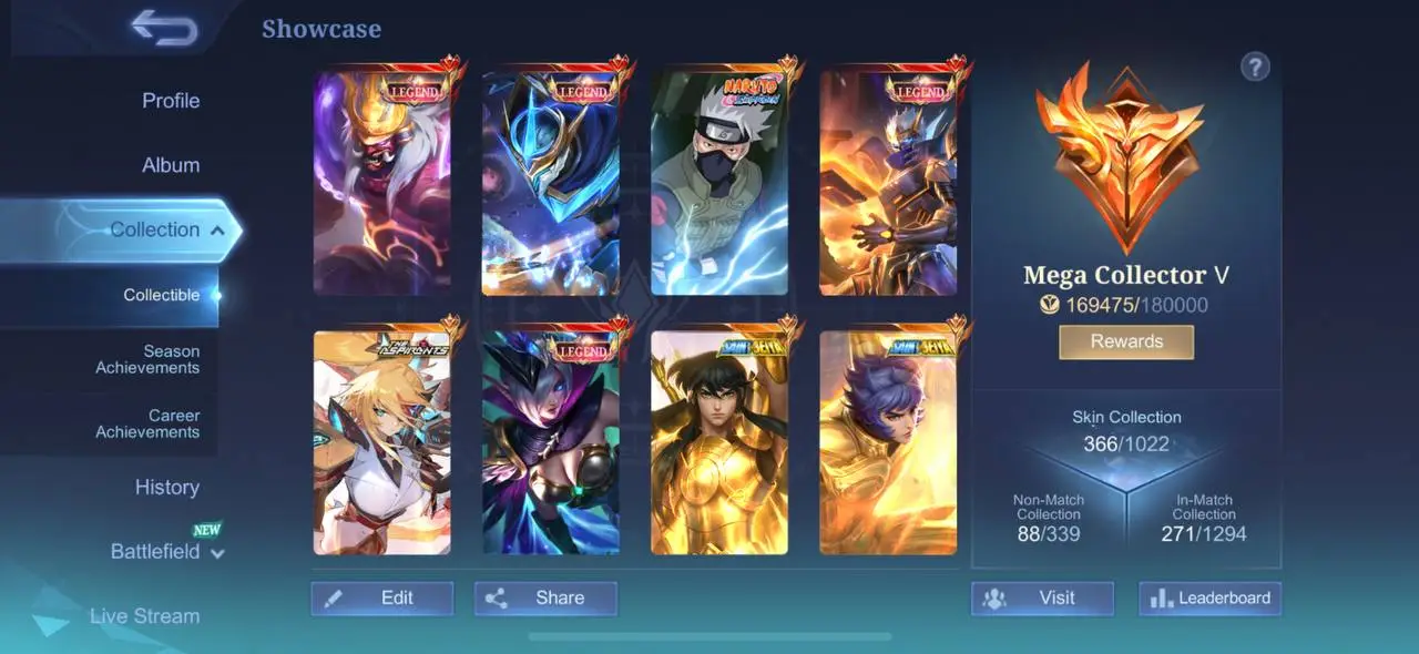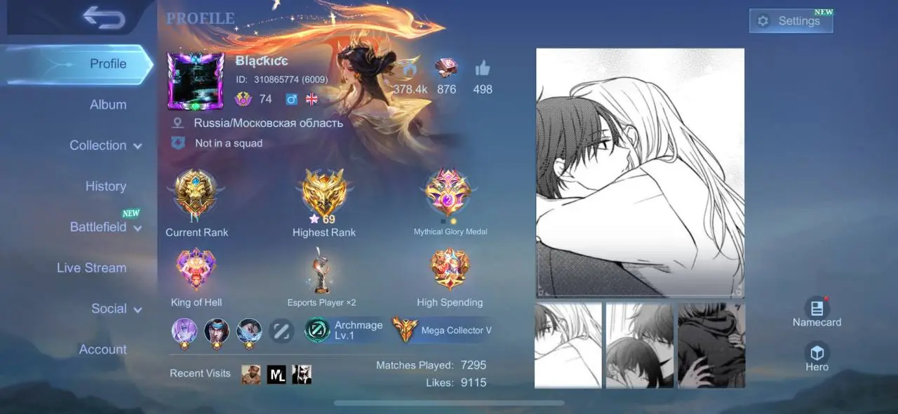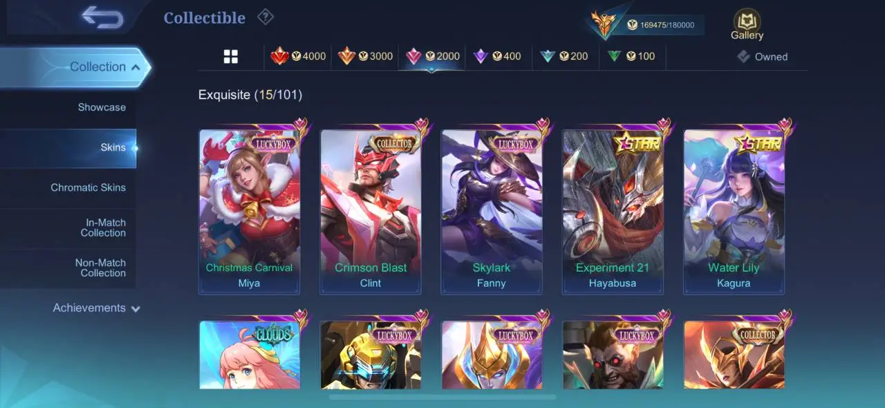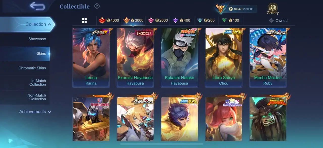 MG59 Highest Rank Mythic Glory 69⭐; LEGEND Miya, Franco, Gossen, Granger; Koff Guinevere, Paquito, Darius, Karina; EXORCISTS Hayabusa and Granger
