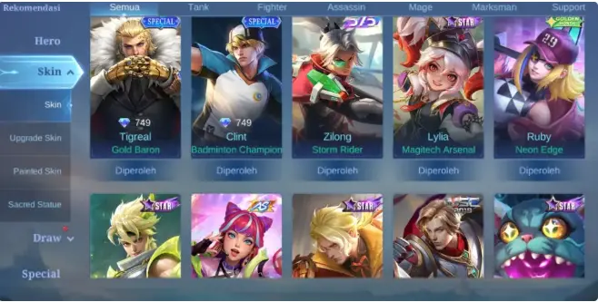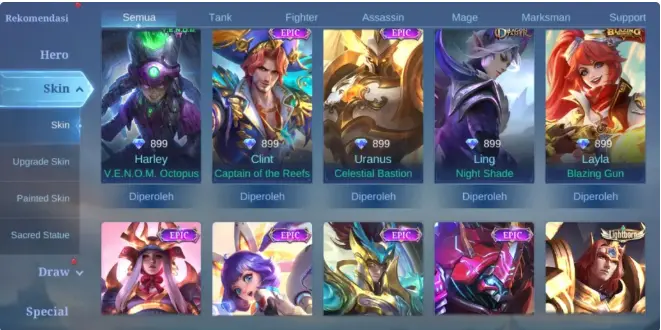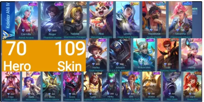 ML447 // Epic 5 Rank Account ⸱ 109 Skins, 70 Heroes, Miya Hero, 50% Winrate