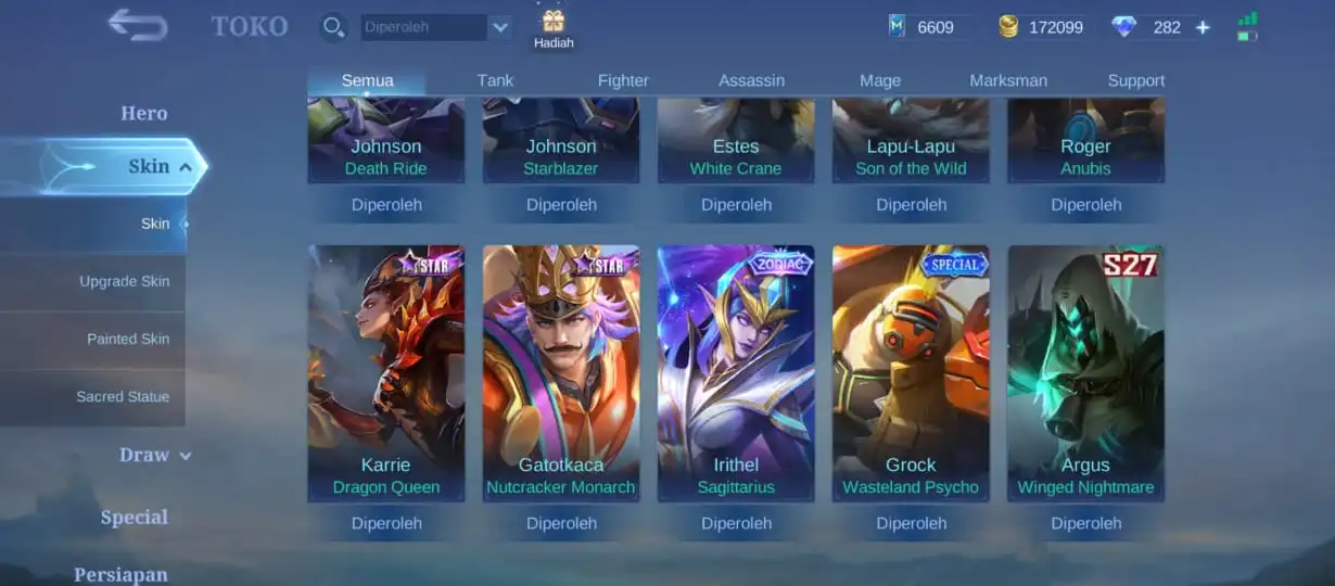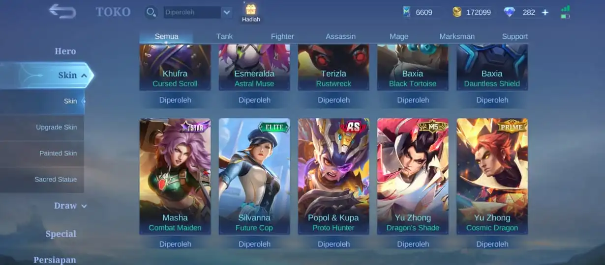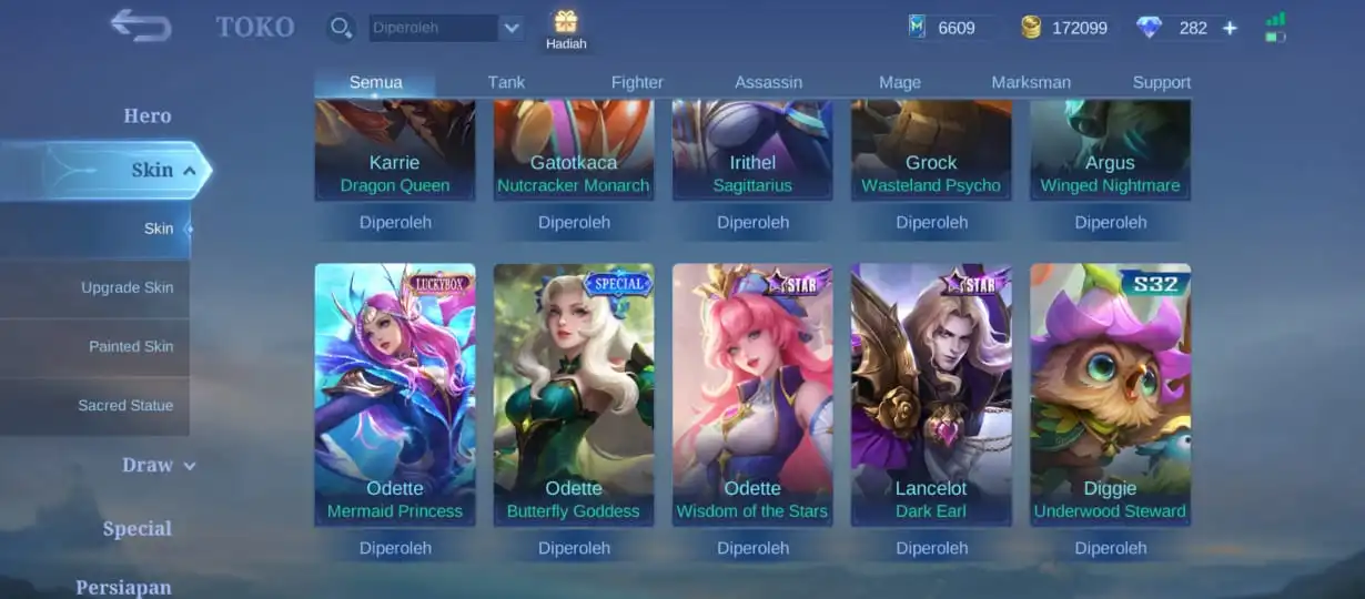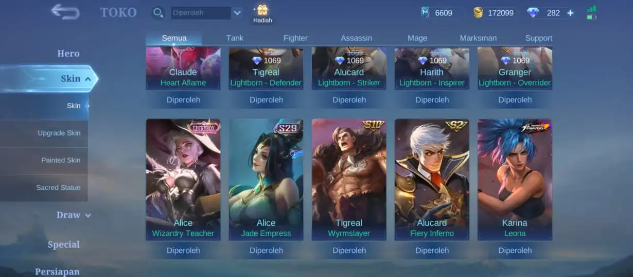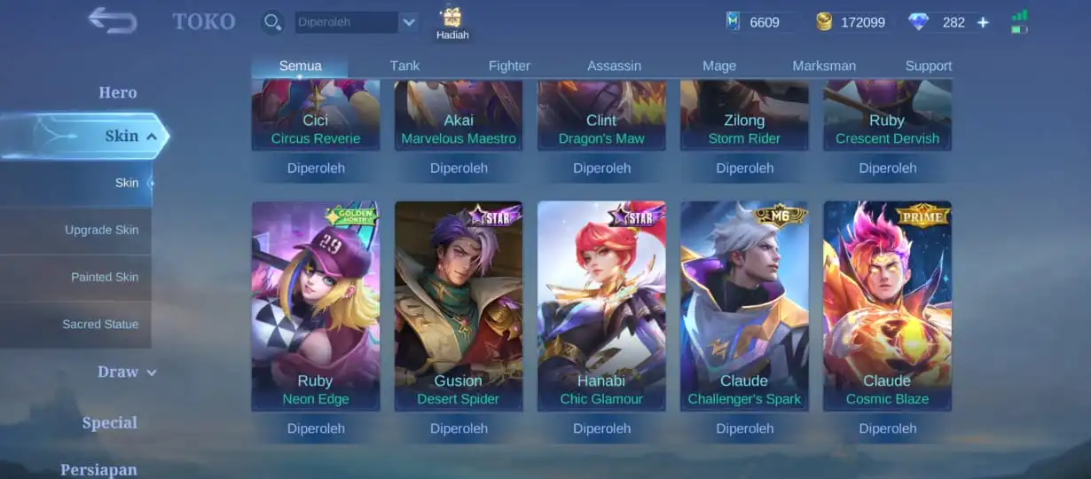 MW64/LV85/130HERO/250SKIN/EMBLEM MAX/PRIME CLAUDE YUZHONG/LUCKYBOX URANUS ALICE ODETTE/SANRIO FLORYN/ZODIAC IRITHEL SELENA/4 LIGHTBORN/3 CHRISTMAS/11 EPIC LIMITED