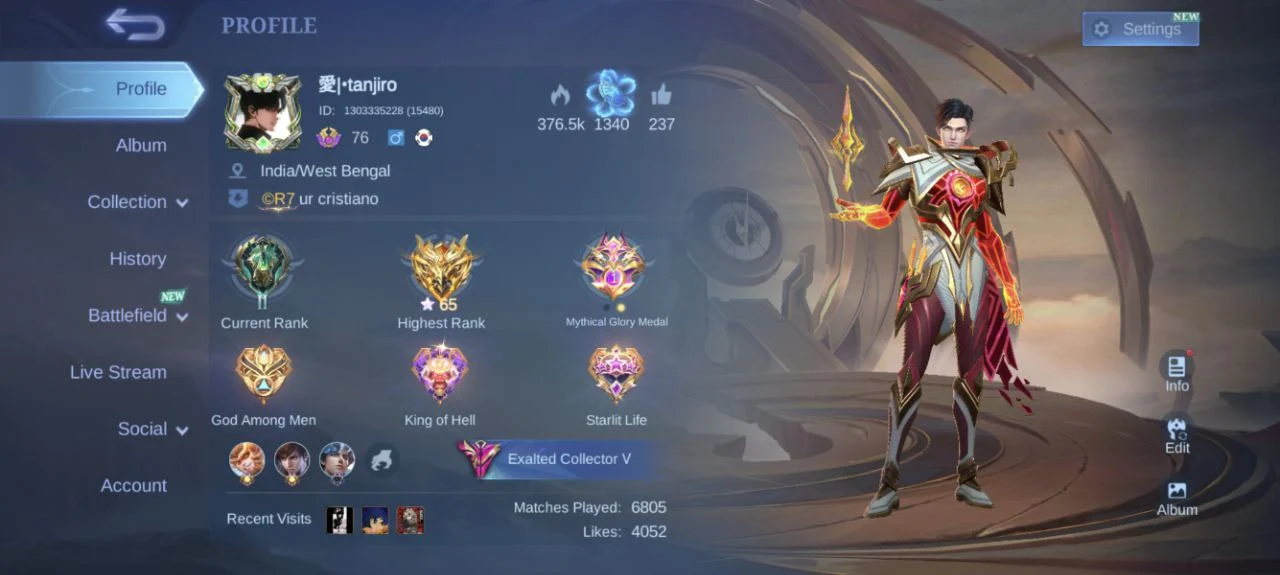 {Rebindable} Mythic Glory 65 🔴 Exalted Collector 5 🔴 Max Emblem ⸱ Legend Franco ( Hell of Fire ) ⸱ 294 Skins ⸱ A13