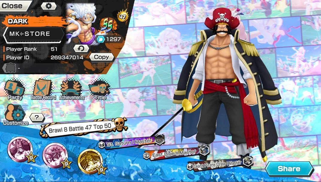 BR678-IOS+Android-Hyber Boost 47-10 Ex Meta(Gear 5 v2+Kizaru+Garp+Sabo+Kuzan+Lucci+Roger Skin+Kid Law+Kaido+Akainu)+Good Medal+Support 162%+Many BF Max+Good Account