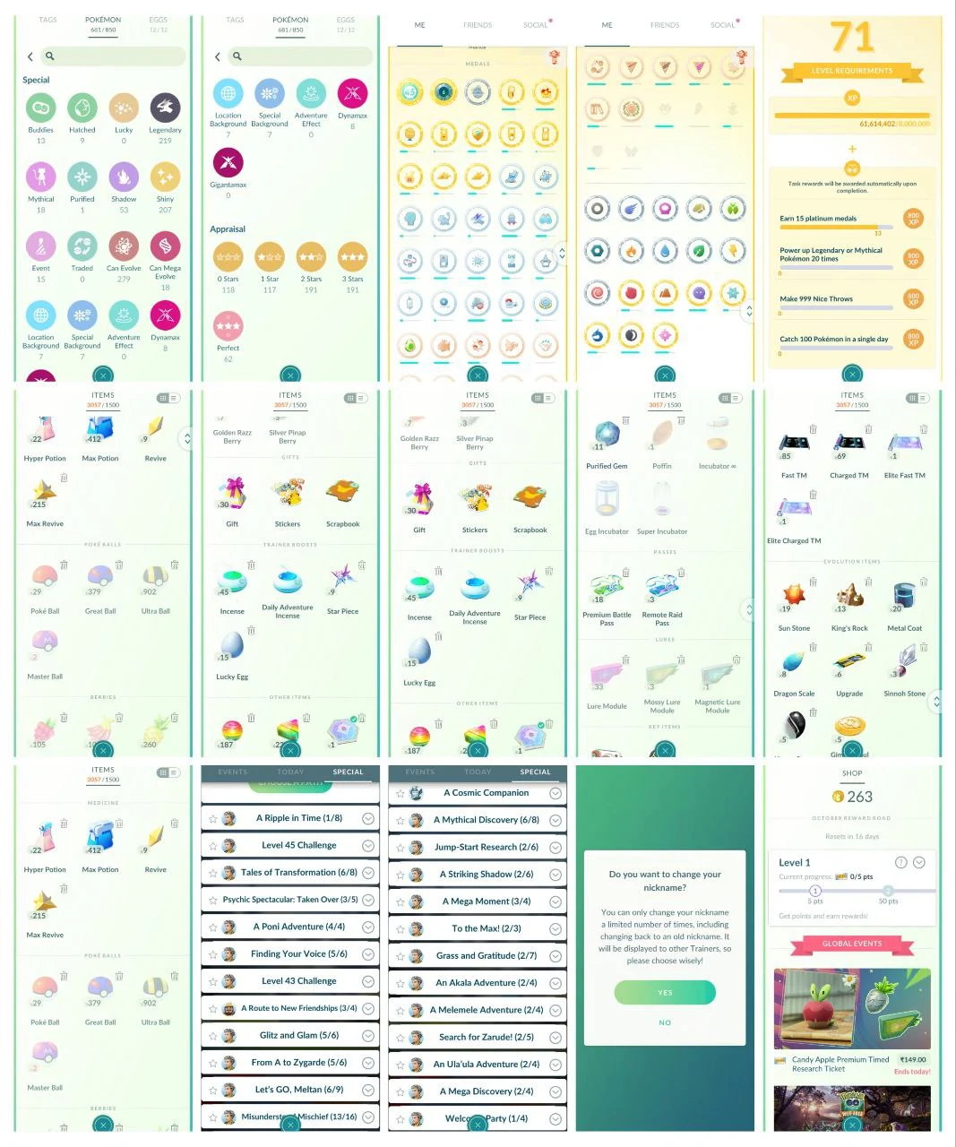 1)🎯 LEVEL 70 🕹️ | 📅 2021 YEAR🧬 RARE POKÉMON: —👑 LEGENDARY: 219🌈 SHINY: 207🐉 POKÉMON: 850🎒 ITEMS: 1500