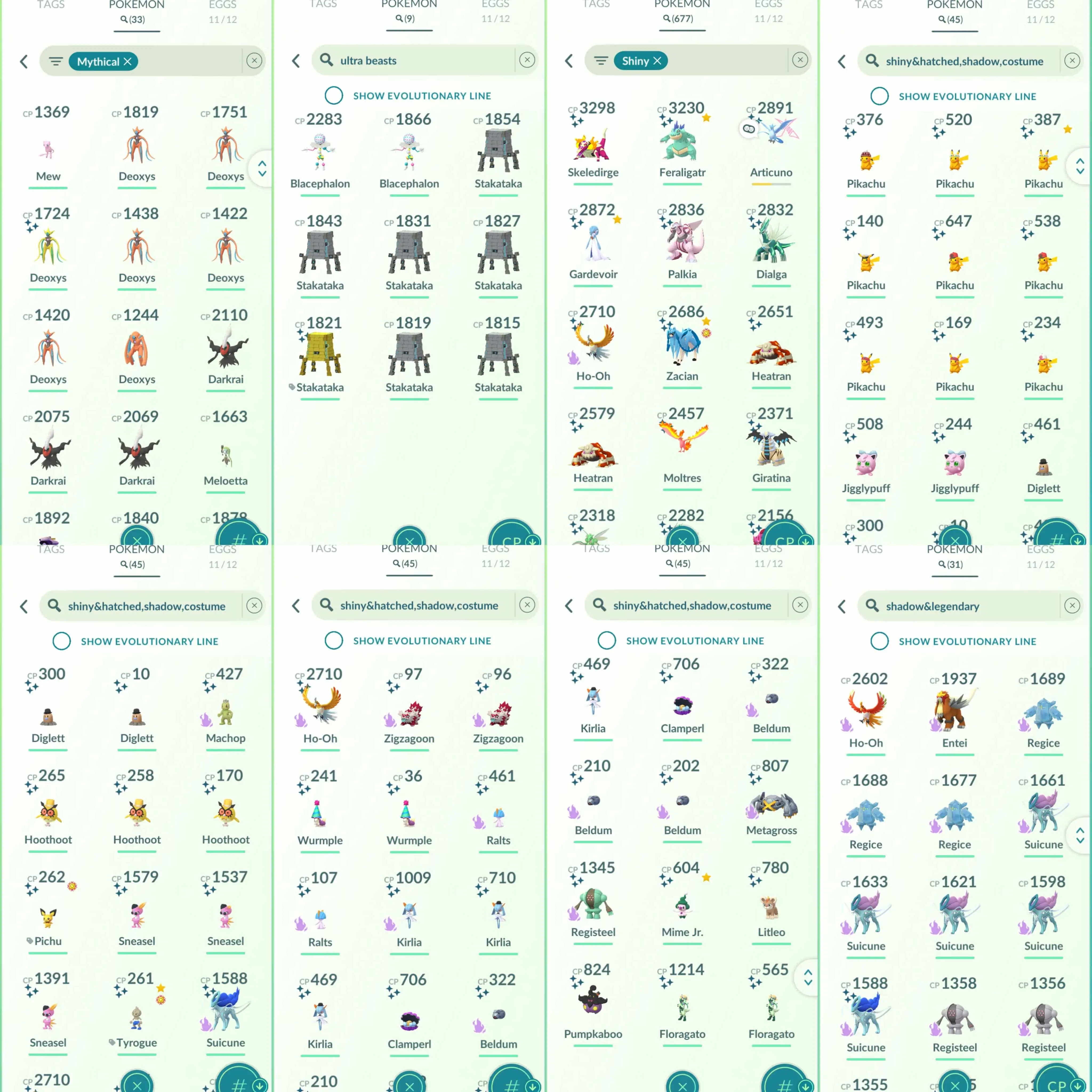 Shiny: shadow metagross, DMax Articuno, genesect, stakataka, deoxys, shadow suicune, shadow registeel, coballion, palkia, dialga, shadow ho-oh, zacian, heatran, moltres, giratina, dialga, zamazenta, latias,