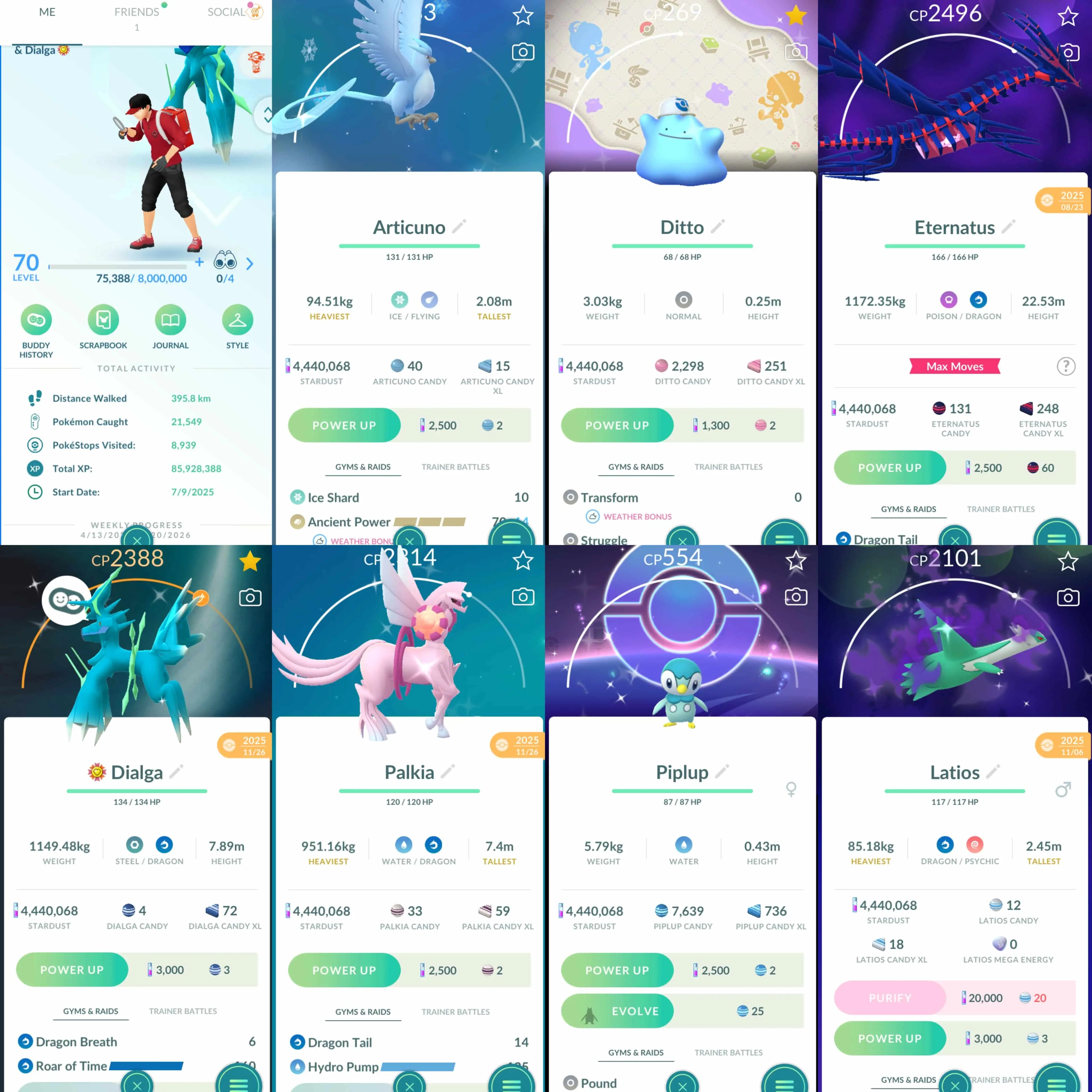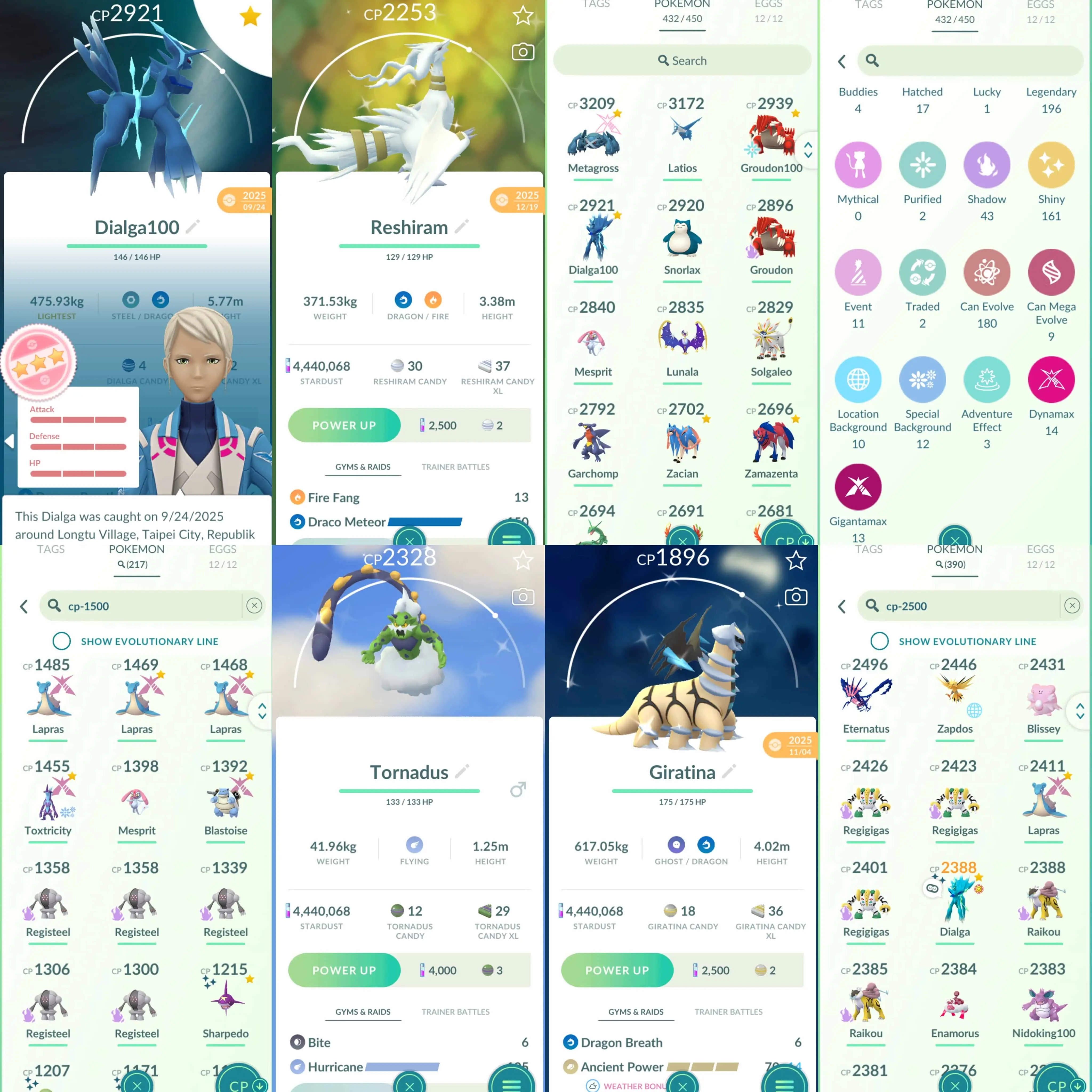 Shiny: Articuno, shadow Latios, Giratina, Tornadus, Reshiram