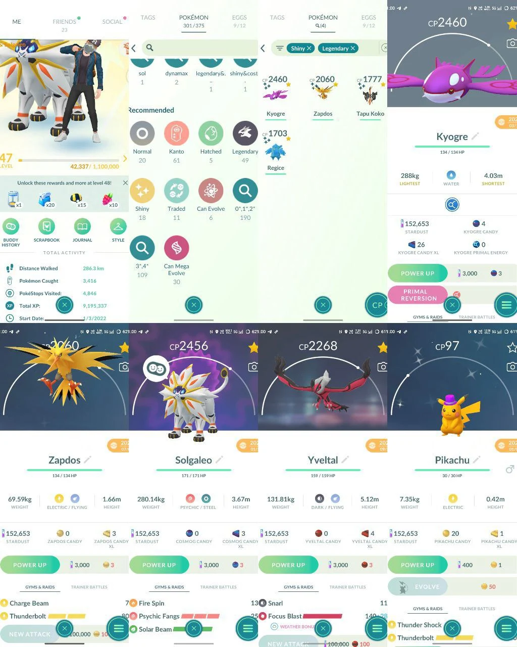 [G200] LEVEL 47 ACCOUNT I SHINY KYOGRA, ZAPDOS,YVELTAL , 4 SHINY LEGENDARY I 7 MYTHICAL I 7 HUNDO I INSTANT ACCESS