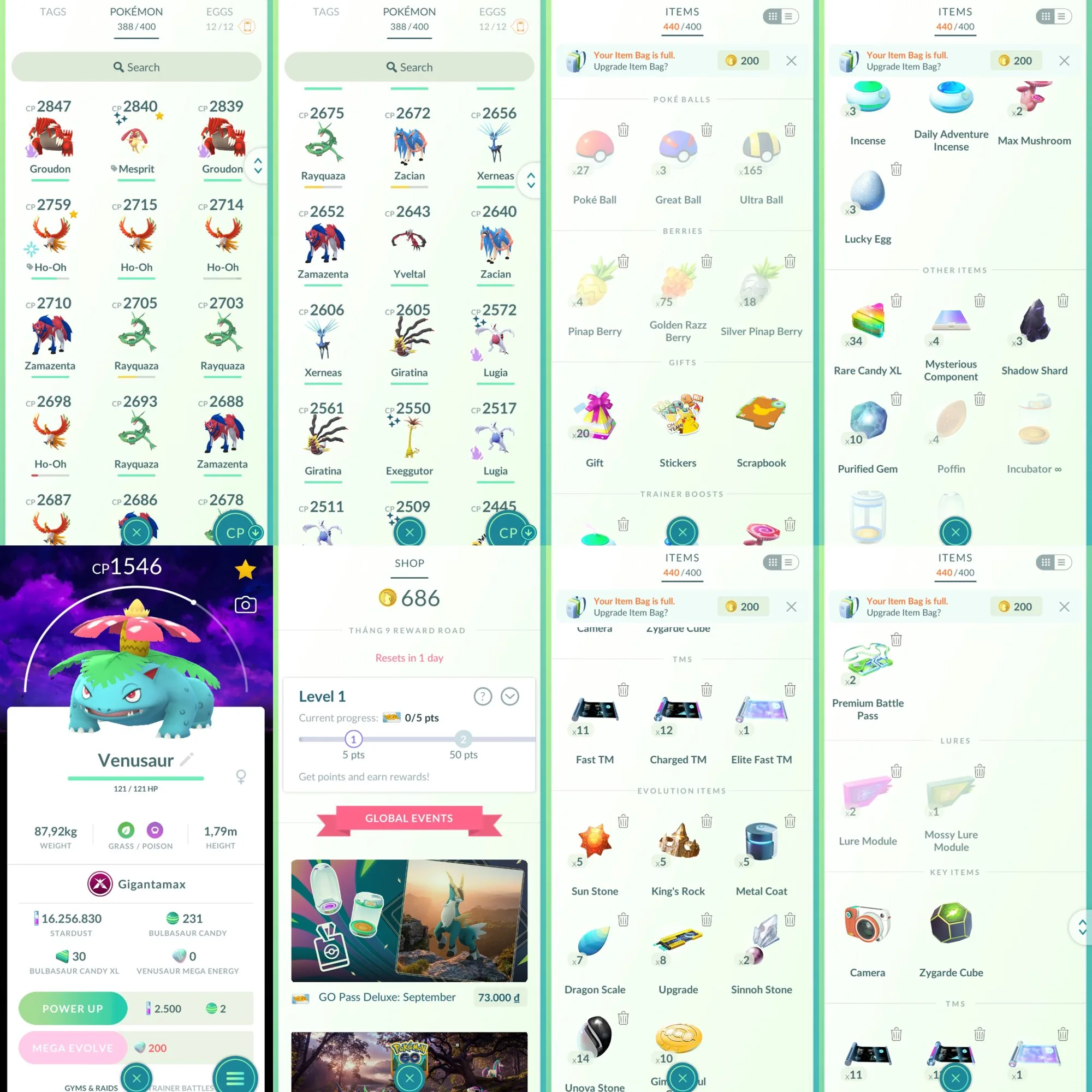 High Level 45+ -9 Legend iv100-Shundo Kyurem-Dialga Origin RoT iv100-226 Legend-23 Hundo-104 shiny-16mil+ Stardust-10 Special BG-17 Gmax-686 Coins-4 Costume