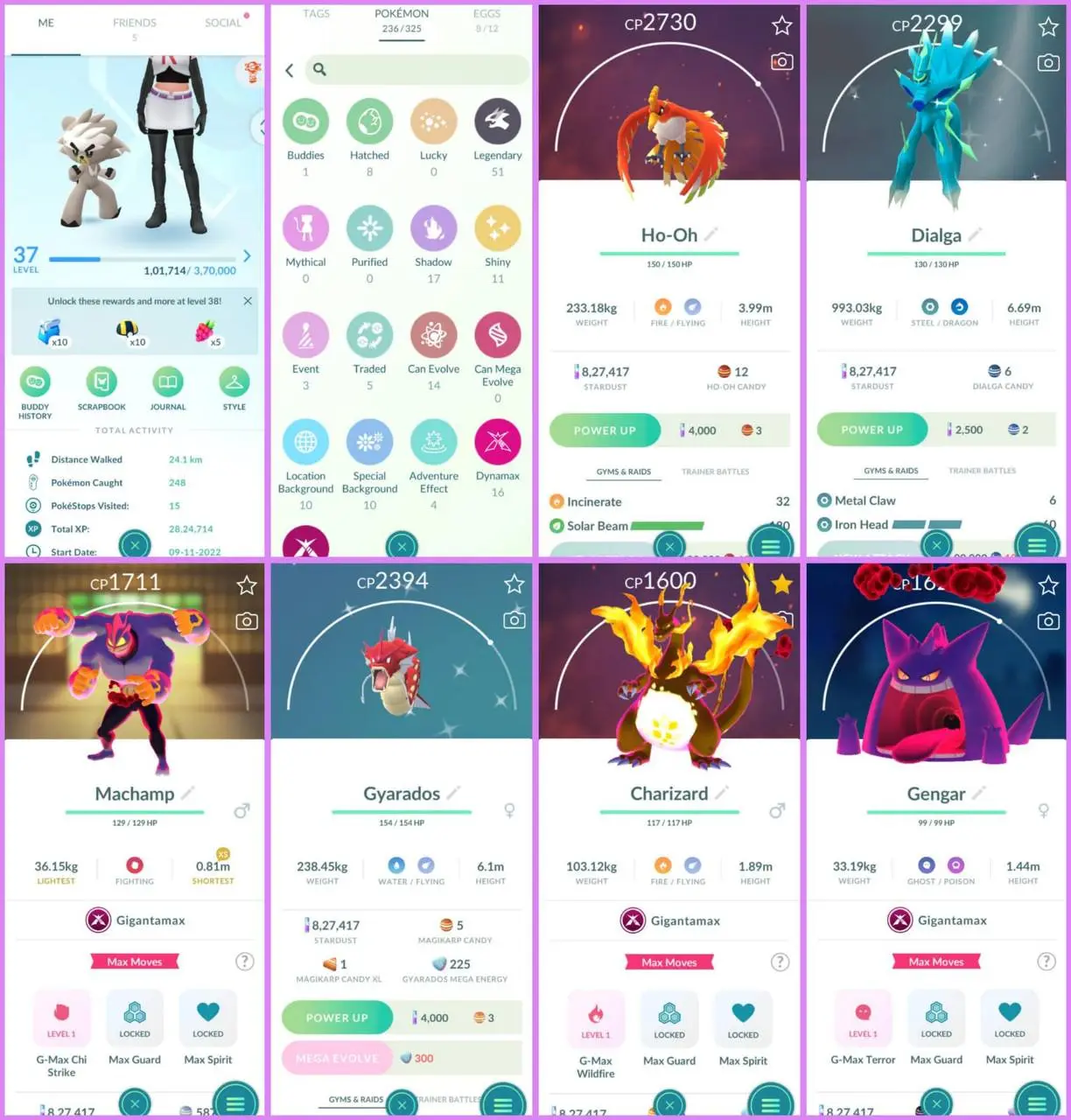 LEVEL 37(MYSTIC)💎236/325 Pokemon💎51 Legendary💎33 G-Max💎2 G-Max Charizard💎12 G-Max Gengar💎G-Max Toxtricity💎Name Change Available💎Instant Delivery🚚