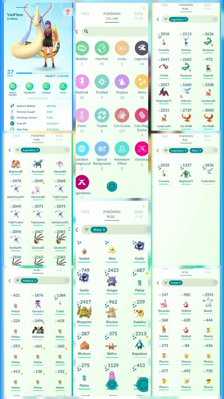 VD18 | Level37 | 44 Legendary | 52 Shiny | 3 Shiny Legend | Rayquaza | Mewtwo | Shiny Celebi | Lugia | Shiny Gengar | 15 Costume Pokemons | 2018 Account