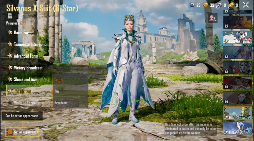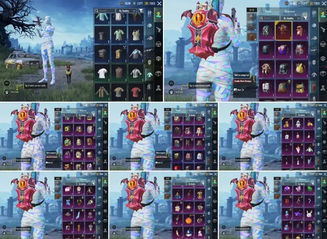 การเข้าถึงคอสเมติกที่เลิกใช้งานแล้ว รวมถึงชุด เช่น PUBG Fool Set, PUBG Lizard, และ PUBG Mummy ซึ่งไม่สามารถรับได้จากกิจกรรมหรือพาสปัจจุบันใดๆ
