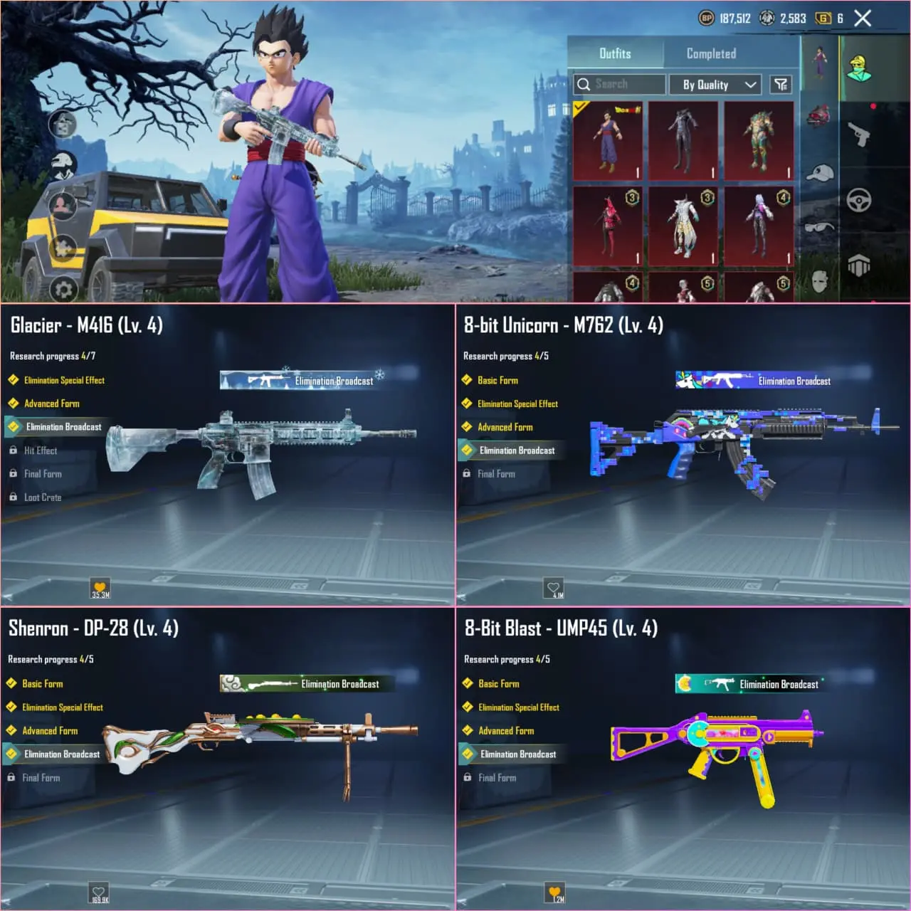 M416 GLACIER x M762 x DP-28 x UMP45 (KILL MSG COMBO) • MIDKNIGHT ENIGMA SET • MIDKNIGHT RAVEN SET • 61/300 MYTHIC • 22x GUN-LAB
