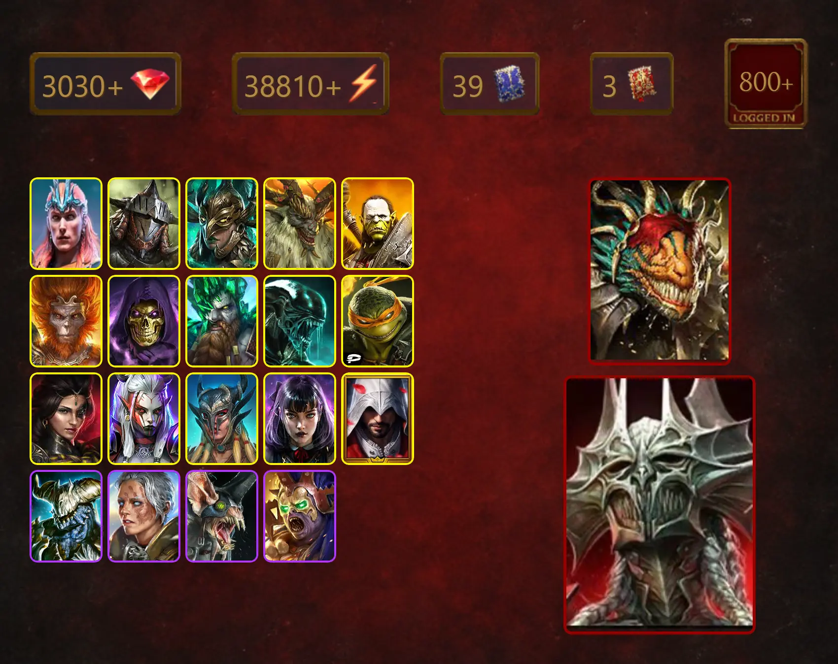 [STARTER][Double Mythical]+Lazarius+Blood Marchioness Mina+Loki+Rathalos+Leminisi the Gold-Wing+Khoronar+Artak+Wukong+39Epics