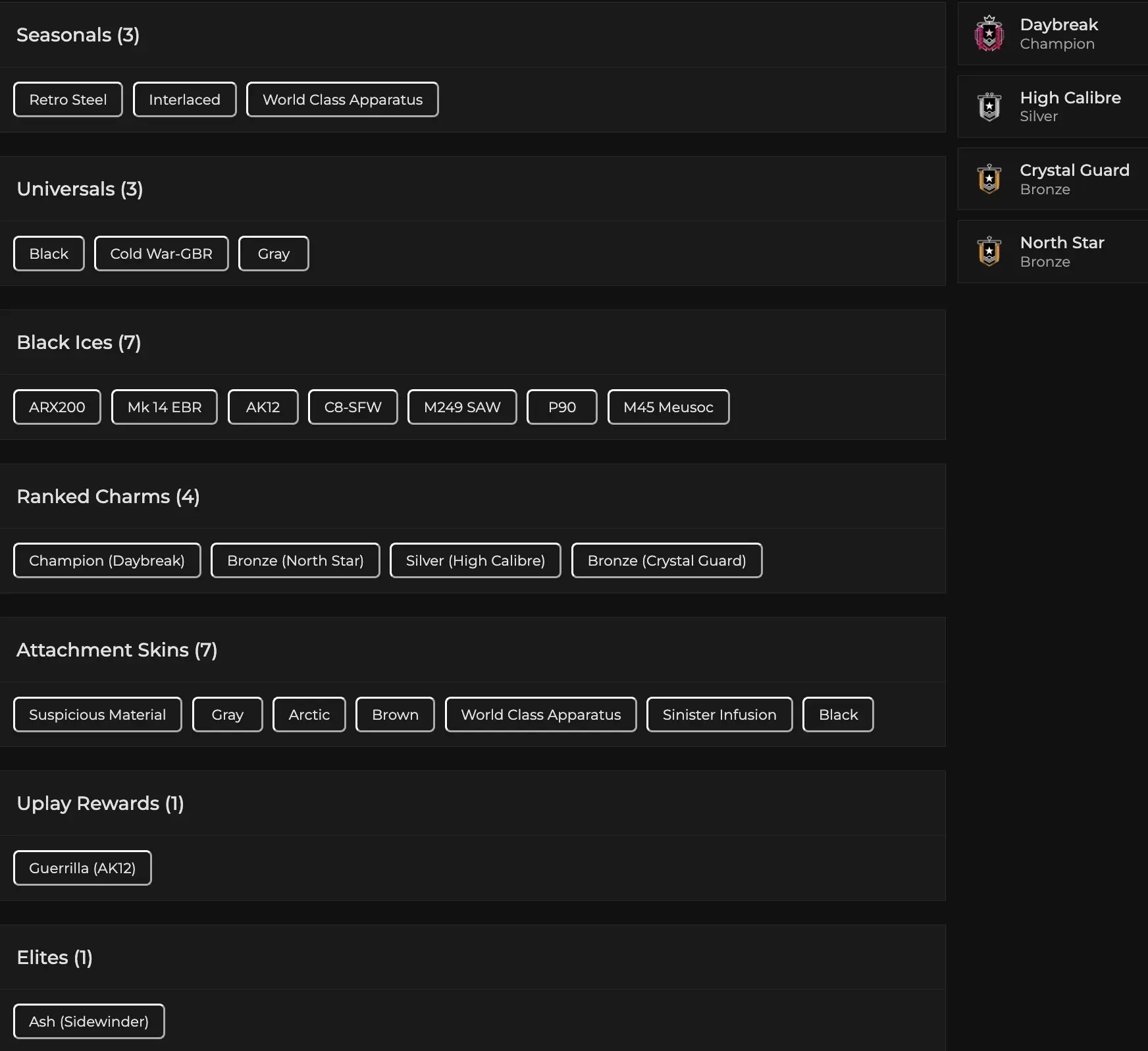 🟡 [PC/XBOX] Ranked Ready | Level 104 | CHAMPIONS DayBreak | 7x Black Ice | 3x Seasonal | 3x Universal | 5x Legendary Skins | Elite | 56 Operators | 9527 Renown