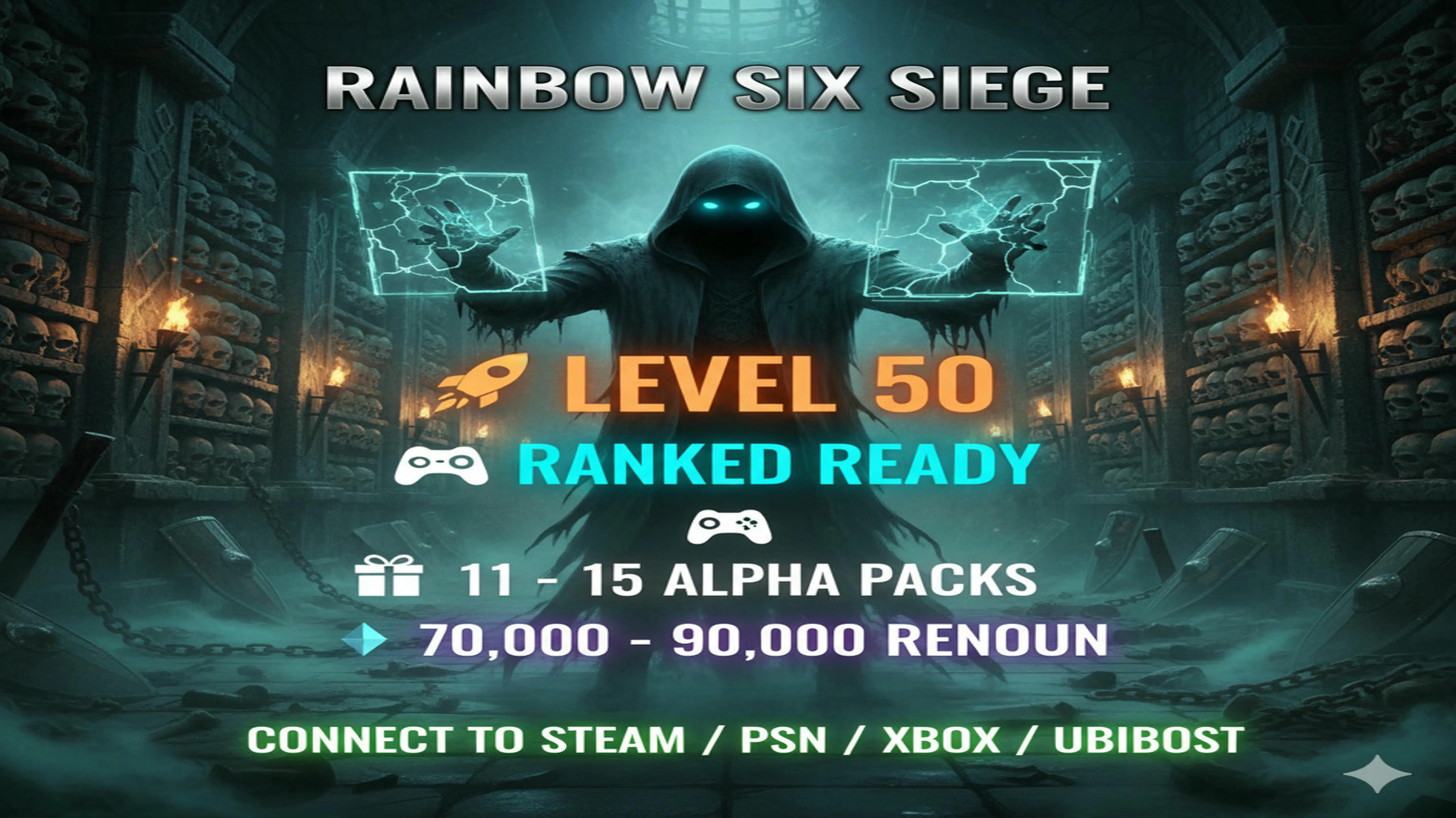 🚜 Trustline 🚜Level 50 🚜 Ranked Ready 🚜 11 ⸱ 15 Alpha Packs 🚜 70,000 ⸱ 90,000 Renown 🚜 Connect to Steam / PSN / Xbox / Ubisoft 🚜 Full Access 🚜 13 Champions #XnxhA4
