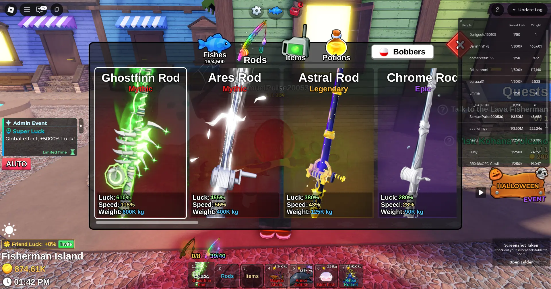 Fish it Account ❄️ 2 mythic rod ❄️ corrupt bait bait ❄️ secret + mythic Fish ❄️ 1/3.5m catch ❄️ 874k Coin ❄️ Skin Rods ❄️ Level 309