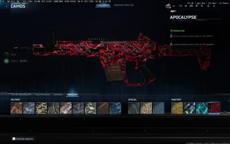 BO7+WZ5 | Apocalypse Camo + Prestige Master | Rank Ready | LEVEL 56 | FULL ACCESS | all platforms are linkable