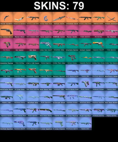 80 SKINS | 5 KNIFE | CHAMPIONS 2024 PHANTOM | KURONAMI VANDAL | RGX 11Z PRO VANDAL | RGX 11Z PRO OPERATOR | RUINATION SPECTRE | NEO FRONTIER SHERIFF | XERØFANG KNIFE | XERØFANG VANDAL | REAVER VANDAL | SPECTRUM PHANTOM | SOVEREIGN
