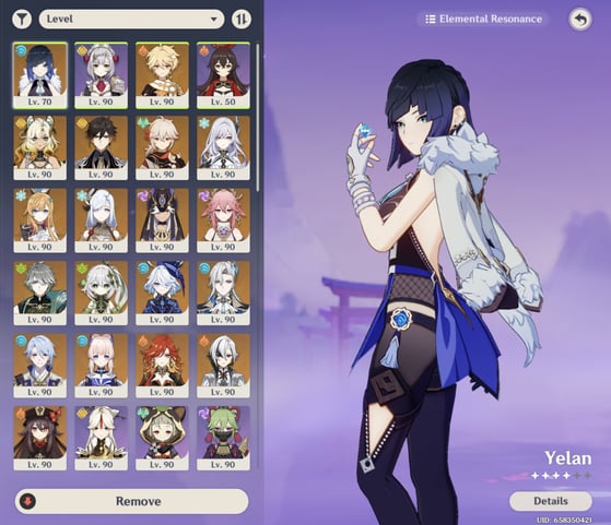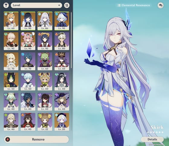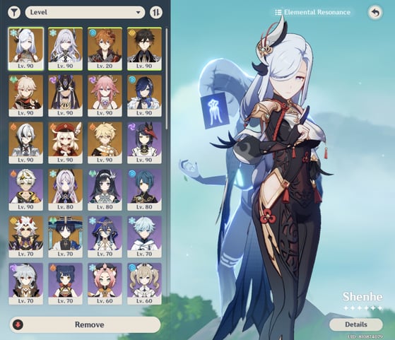 shenhe skirk sig , child Zhongli kazuha Cyno Yelan Arlecchino Klee Citlali itto Wanderer ar58