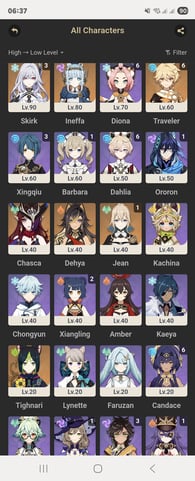Yelan Xilonen Zhongli kazuha Skirk Escoffier shenhe Cyno yae miko Alhaitham Nahida Furina Neuvillette Ayato Kokomi Mavuika Arlecchino Hutao