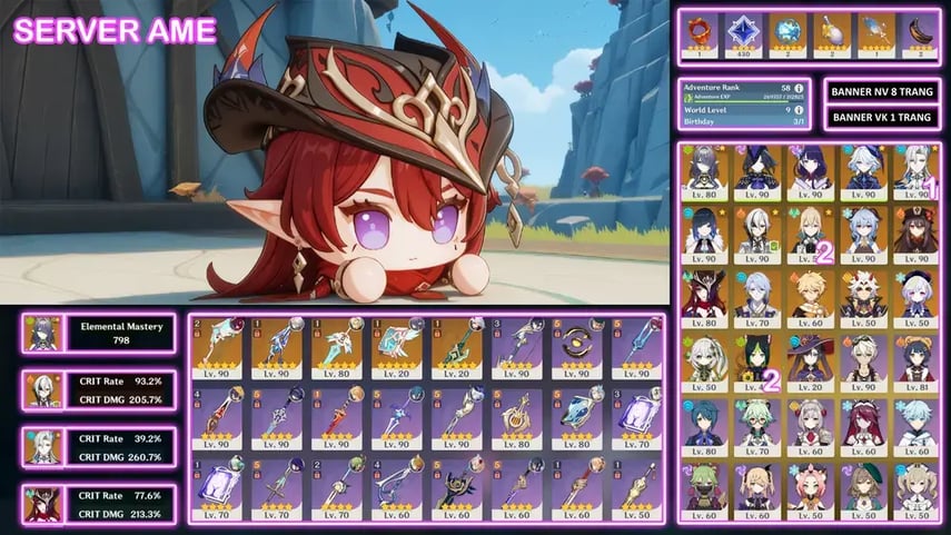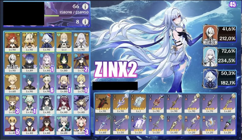 Mavuika Chasca c1 , mulani xilonen kazuha skirk citlali raiden furina c1 , neuvillette hutao c1 , nahida yoimiya Flins ar60