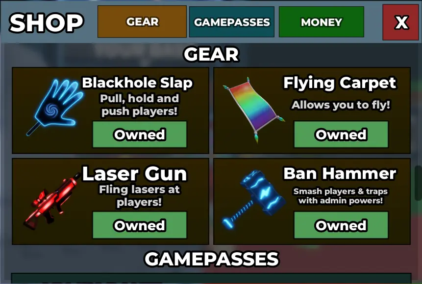 Rebirths 17, All unlock ( Admin Commands, VIP, x2 Money, Flying Carpet, BlackHole Slap,Laser Gun, Ban Hammer ), Private Server, Aquatic Base Skin & With's Broom