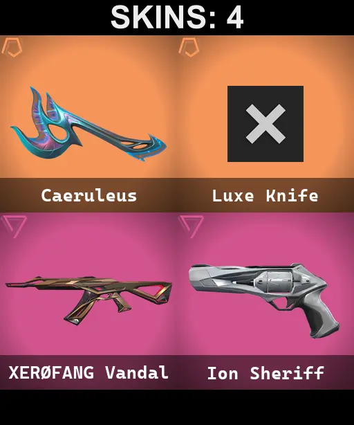 4 SKINS | 2 KNIFE | XEROFANG VANDAL | ION SHERIFF | CAERULEUS | LUXE KNIFE | EU | IRON 3 | 5 AGENTS | FULL ACCESS | SCREENSHOTS INSIDE