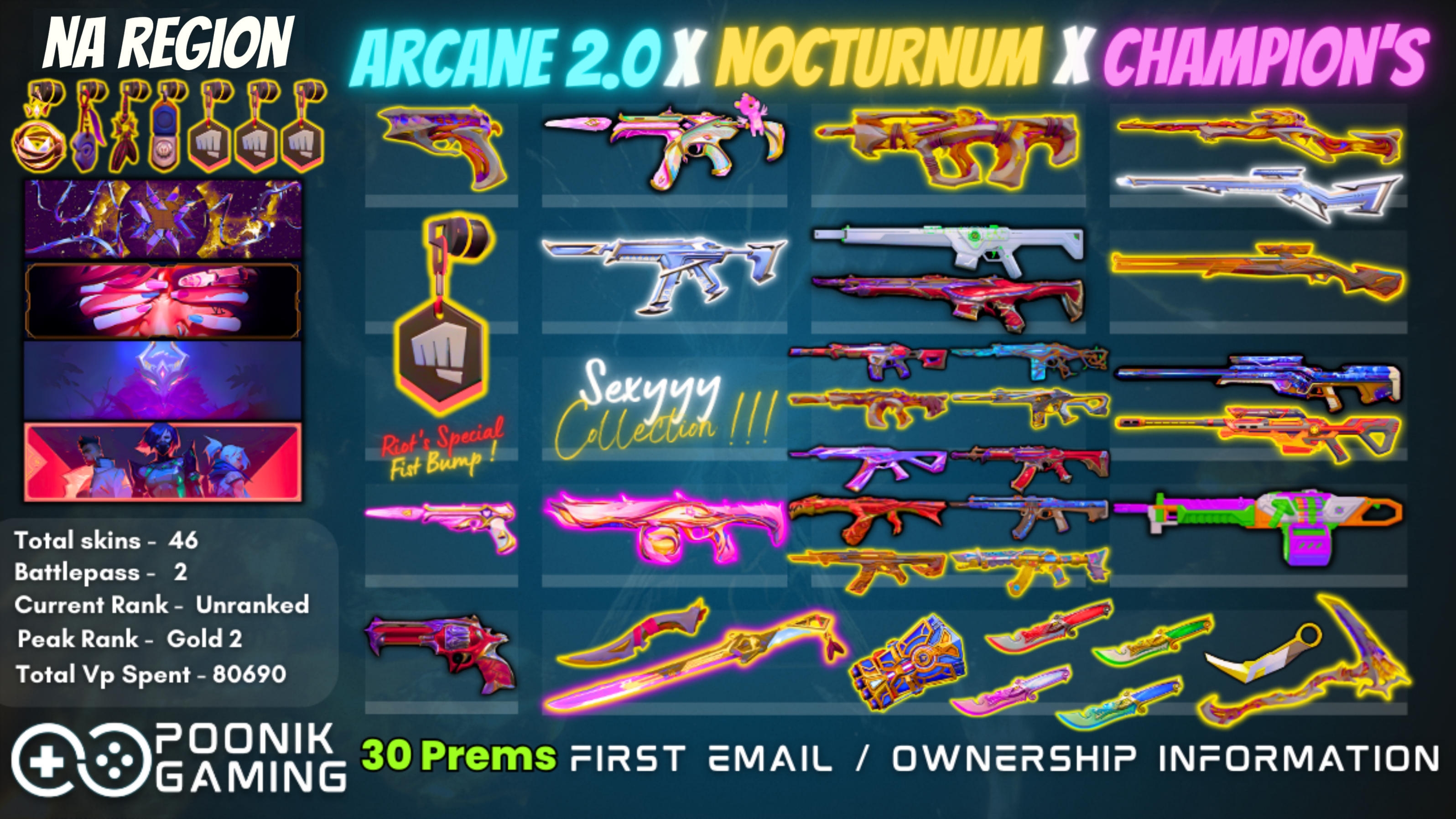 🎯 80K+ VP SPENT ⸱ NA REGION | RIOT GUN BUDDY | WITH FIRST EMAIL | BETA MELLE, ARCANE 2.0 BUNDLE, CHAMPIONS 2024 BUNDLE, EXO, MYSTBLOOM AND MORE [V675]