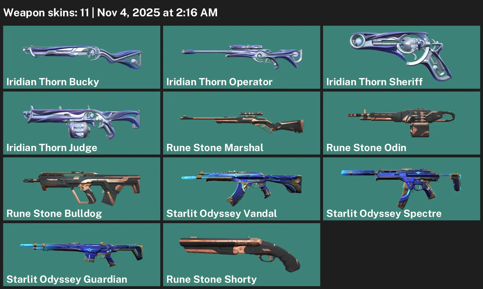 AP | 11 Skins | exp PLATINUM 1 | Starlit Odyssey Vandal | Iridian Thorn Operator | Rune Stone Marshal | Iridian Thorn Bucky | S4G